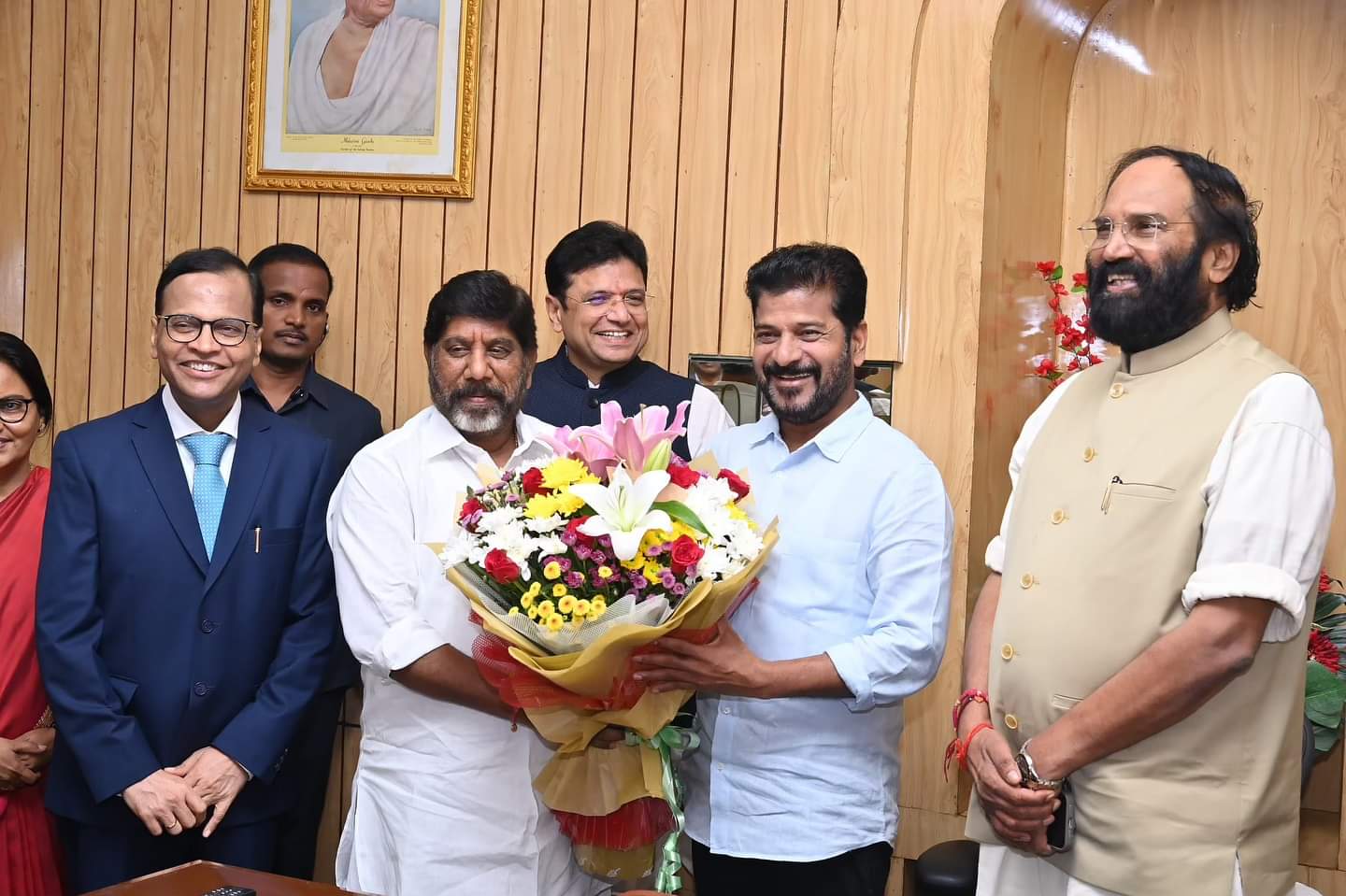 ఎనుముల రేవంత్ రెడ్డి కి స్పీకర్ మరియు రాష్ట్ర మంత్రి మరియు సహచర శాసనసభ్యుల తో కలిసి హృదయపూర్వక అభినందనలు తెలియజేసిన వర్ధన్నపేట శాసనసభ్యులు విశ్రాంత ఐపీఎస్ అధికారి కేఆర్ నాగరాజు.