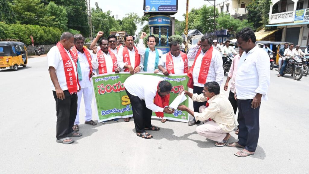 యస్ కే యం నిజామాబాద్ జిల్లా కమిటీ ఆధ్వర్యంలో నగరంలోని ధర్నా చౌక్ వద్ద బడ్జెట్ పత్రాలను దగ్ధం