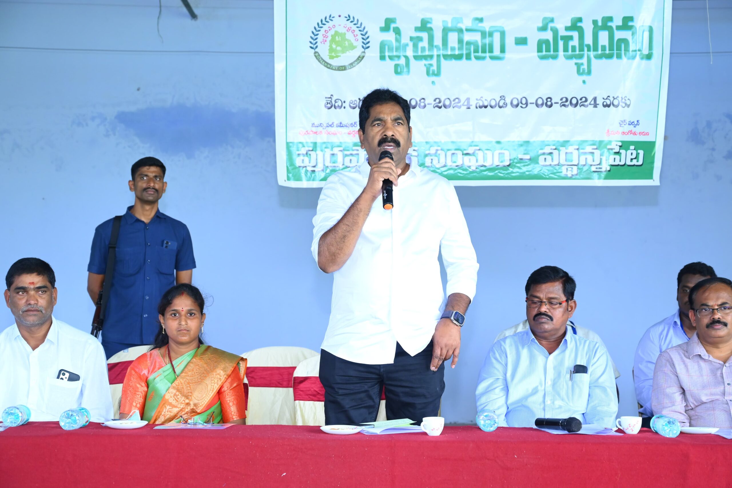 వర్ధన్నపేట మున్సిపల్ కార్పొరేషన్ పరిధిలోని కళాక్షేత్రంలో వర్ధన్నపేట మున్సిపాలిటీ ఆధ్వర్యంలో నిర్వహించే స్వచ్ఛధనం – పచ్చదనం కార్యక్రమంలో ముఖ్య అతిథిగా పాల్గొని కార్యక్రమాన్ని జెండా ఊపి ప్రారంభించిన వర్ధన్నపేట శాసనసభ్యులు విశ్రాంత ఐపీఎస్ అధికారి కేఆర్ నాగరాజు.అనంతరం స్వచ్ఛదనం -పచ్చదనం