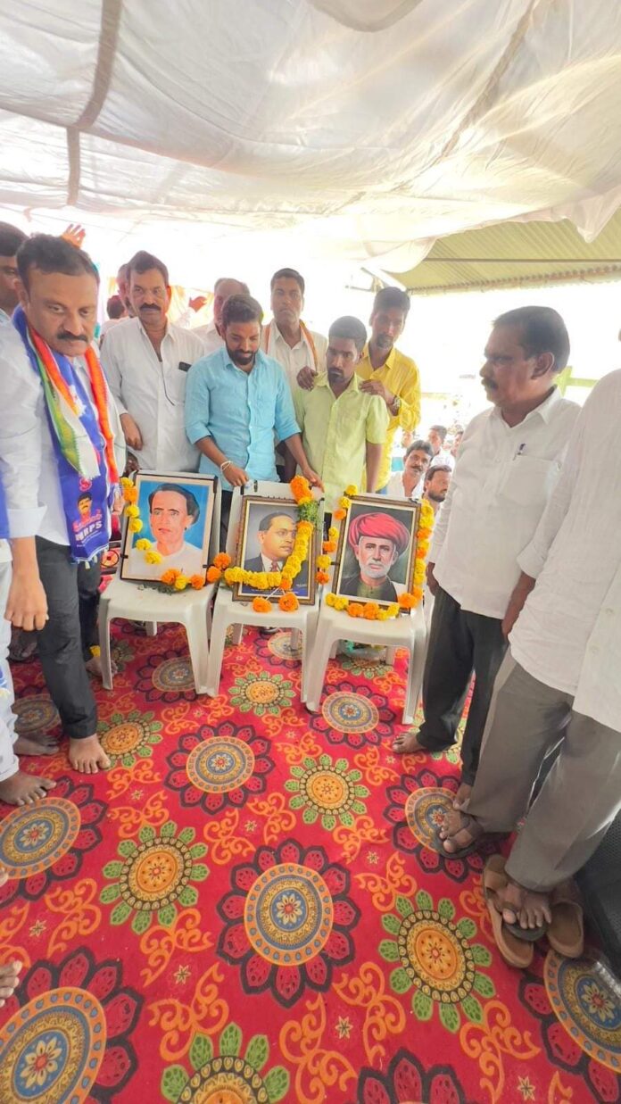 ఎమ్మెల్యే అంబేద్కర్ విగ్రహానికి పూల మాల వేసి నివాళులు అర్పించారు.అనంతరం సభా ప్రాంగణానికి చేరుకుని వేదిక మీద ఏర్పాటు చేసిన మహనీయులు మహాత్మా జ్యోతిబా పూలే, బాబా సాహెబ్ అంబేద్కర్, అన్నా భావు సాఠె,బసవేశ్వర్ మహారాజ్ చిత్రపటాలకు పూల మాలలు వేసి నివాళులు అర్పించారు.ఈ సందర్బంగా ఎమ్మెల్యే మాట్లాడుతూ ఎస్సీ వర్గీకరణపై సుప్రీంకోర్టు తీర్పును స్వాగతిస్తున్నామన్నారు.