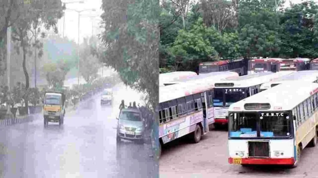 తెలుగు రాష్ట్రాల్లో వానలు దంచికొడుతున్నాయి. ఈ క్రమంలో ఆర్టీసీ బస్సులను రద్దు చేయాలని అధికారులు నిర్ణయించారు.నిన్న రాత్రి వరకు 877 బస్సులను తెలంగాణ ఆర్టీసీ రద్దు చేసింది. ఈరోజు(సోమవారం) ఉదయం నుంచి 570 బస్సులను రద్దు చేశారు. ముఖ్యంగా ఖమ్మం, విజయవాడ , మహబూబ్బాద్ వైపుగా వెళ్ళే రోడ్లన్నీ జలమయం అవ్వడంతో బస్సు రూట్లనుు పూర్తిగా బంద్ చేశారు.