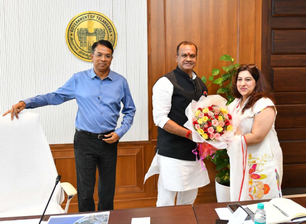 విమెన్ స్కిల్లింగ్ హబ్స్ ఏర్పాటు వంటి నూతన విధానాలను రూపొందించడం ద్వారా రాష్ట్ర ప్రగతిని వేగవంతం చేయవచ్చని తన ప్రజెంటేషన్ లో వివరించారు. మరోవైపు రాష్ట్రంలో ఇన్నోవేటివ్ ఫైనాన్స్ మోడల్ ద్వారా ఆర్ధిక సహకారం అందించేందుకు అనువైన ప్రాజెక్టుల గురించి రీనూ అనుజా మంత్రికి వివరించారు.అనంతరం మాట్లాడిన మంత్రి కోమటిరెడ్డి వెంకట్ రెడ్డి.. వందలాది మంది ప్రజలు రోడ్డు ప్రమాదాల్లో చనిపోతున్నప్పటికి గత ప్రభుత్వం ఏమాత్రం శ్రద్ధ వహించలేదని.. దానివల్ల ఎందరో అమాయకులు రోడ్డు ప్రమాదాల్లో ప్రాణాలు పోగొట్టుకున్నారని అన్నారు. గత ప్రభుత్వం పదేండ్లలో రోడ్డు భద్రతా ప్రమాణాలు ఏ మాత్రం పాటించలేదని, ప్రమాద బాధితులకు సత్వర చికిత్స అందించేందుకు కనీసం ట్రామాకేర్ సెంటర్స్ ను కూడా నిర్మించలేదన్నారు. కానీ మేం అధికారంలోకి వచ్చాక.. రాష్ట్ర ఆర్ధిక పరిస్థితులను గుర్తెరిగి.. అత్యంత ప్రమాదకరంగా ఉన్న హైవేలపై ట్రామాకేర్ సెంటర్స్ ను ఏర్పాటు చేసేలా చర్యలు చేపట్టామని.. ఇప్పటికే హైదరాబాద్-విజయవాడ జాతీయరహదారిపై ట్రామాకేర్ సెంటర్ నిర్మాణంలో ఉందని తెలిపారు. తెలంగాణలో నిర్మిస్తున్న రహదారుల నిర్మాణంలో వరల్డ్ రోడ్డు కాంగ్రెస్ నిర్ధేశిత ప్రమాణాలను పాటిస్తున్నామని తెలిపారు.