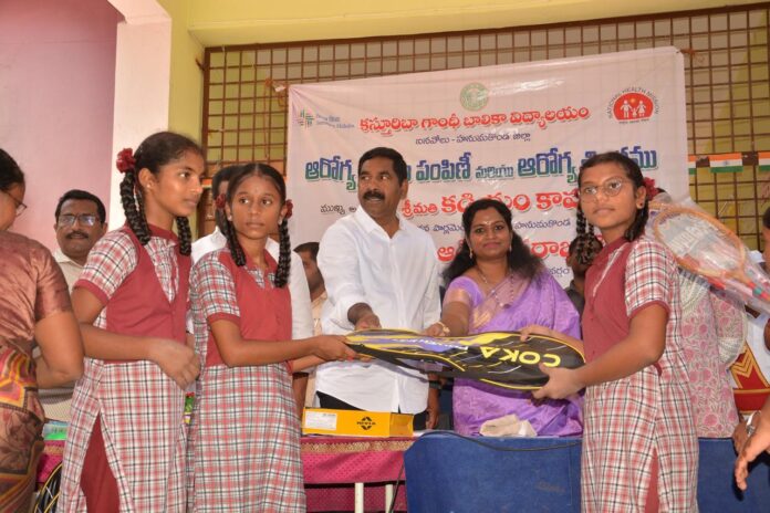 విద్యార్థులు ఏడ్యూకేషన్, హెల్త్, సెల్ఫ్ ప్రొటెక్షన్ పైన మాత్రమే దృష్టి సారించాలని వరంగల్ పార్లమెంట్ సభ్యురాలు డాక్టర్ కడియం కావ్య అన్నారు.ఐనవోలు మండల కేంద్రంలోని కస్తూరిబా పాఠశాలలో విద్యా శాఖ మరియు ఆరోగ్య శాఖ ఆధ్వర్యంలో ఏర్పాటు చేసిన విద్యార్థుల హెల్త్ కార్డుల పంపిణీ కార్యకమానికి వర్దన్నపేట ఎమ్మెల్యే కేఆర్ నాగరాజు , జిల్లా కలెక్టర్ ప్రావీణ్య తో కలిసి ఎంపీ డాక్టర్ కడియం కావ్య ముఖ్య అతిథిగా హాజరయ్యారు.
