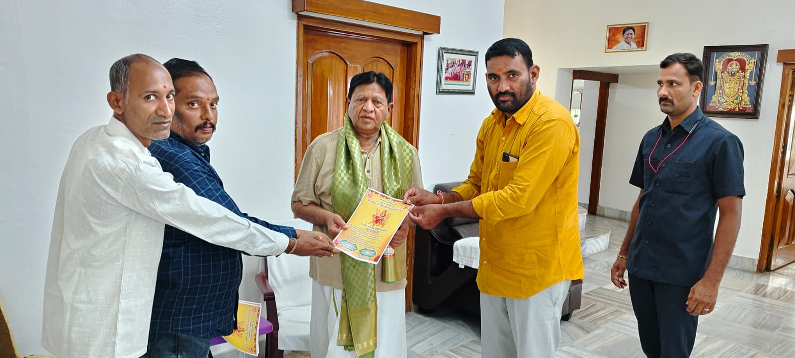 బోధన్ నియోజకవర్గంలోని శక్కర్ నగర్ రామాలయం సర్వజనిక్ దేవీ నవరాత్రులలో ఉత్సవ సమితి తరపున ఉదయం మాజీ మంత్రివర్యులు బోధన్ నియోజకవర్గ శాసనసభ్యులు పొద్దుటూరు సుదర్శన్ రెడ్డి వారి నిజామాబాద్ లోని నివాస గృహములో వద్ద కలసి దేవి నవరాత్రుల ఉత్సవంలో భాగంగా 11 వ తారీకు జరగనున్న అన్నదాన ప్రసాద కార్యక్రమానికి ఆహ్వానించడం జరిగింది.