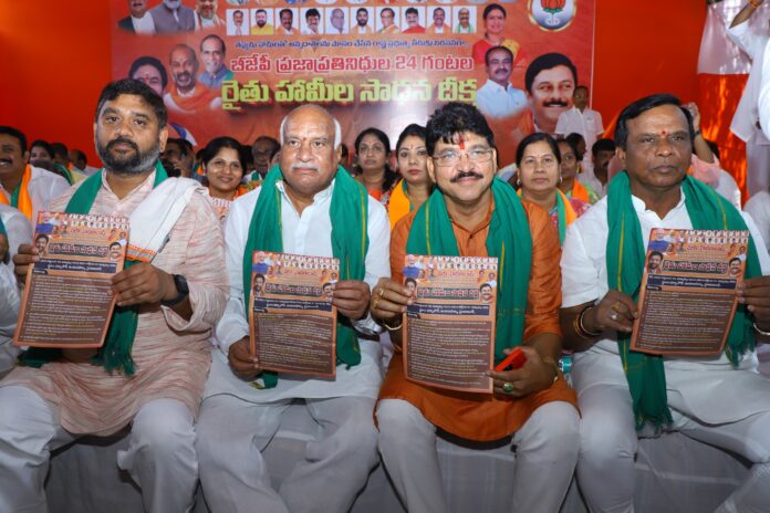 రాష్ట్రంలో ప్రధాన మంత్రి ఫసల్ భీమా యోజన అమలు చేయాలి.సన్న వడ్లతో పాటు దొడ్డు వడ్లకు కూడా 500 రూపాయల బోనస్ చెల్లించాలి.ధరణి పోర్టల్ వలన నష్టపోయిన రైతులకు న్యాయం చేయాలి. తదితర డిమాండ్లను ప్రభుత్వం ముందు పెట్టి పరిష్కరించని పక్షంలో పెద్ద ఎత్తున రైతులతో కలిసి పోరాటాలు చేస్తామని హెచ్చరించారు.భాజపా తెలంగాణ ఇంచార్జ్ అభయ్ పాటిల్ రైతు దీక్షలో కూర్చున్న ప్రజా ప్రతినిధులకు నిమ్మరసం ఇచ్చి దీక్ష విరమింపజేశారు.