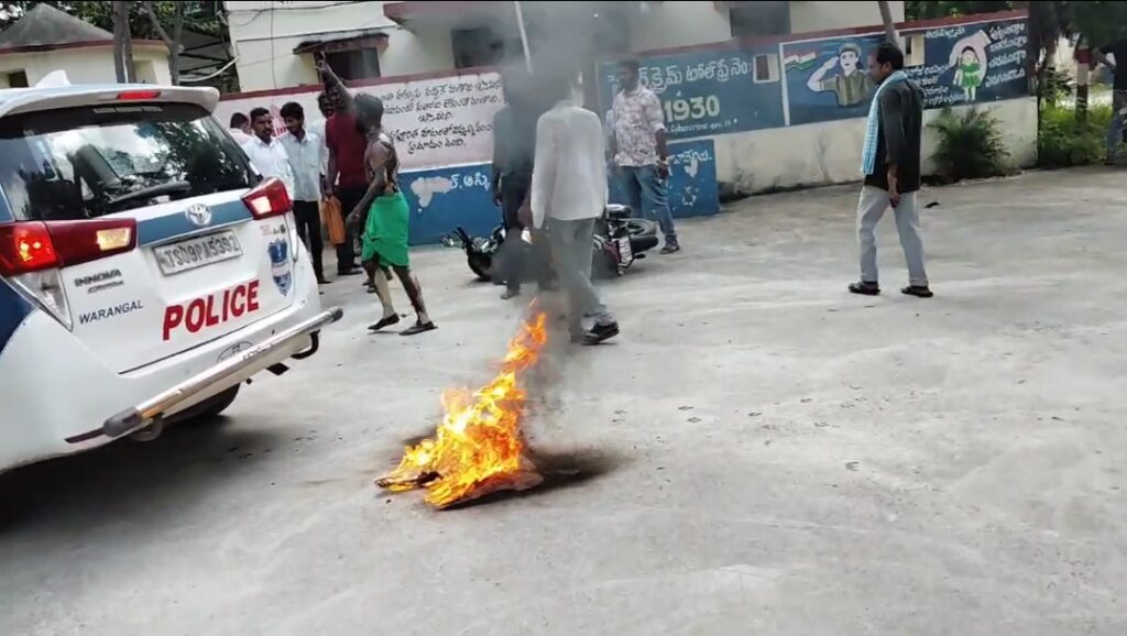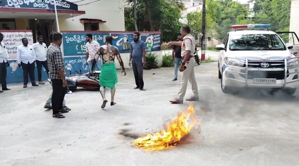 విషయమై పాలకుర్తి పోలీస్ స్టేషన్లో శ్రీను ఫిర్యాదు చేసిన పట్టించుకోవడం లేదు అని ఆవేదనతో పెట్రోల్ పోసుకొని అగాయత్యం కు పాల్పడినట్లు తెలుస్తుంది.కాపాడబోయిన ఎస్సై సాయి ప్రసన్నకుమార్, కానిస్టేబుల్ రవీందర్ కు గాయాలు.మెరుగైన చికిత్స కోసం శీను జనగామ ఏరియా ఆసుపత్రికి తరలింపు.