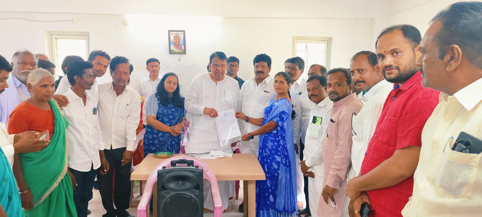 బాన్సువాడ పట్టణ కేంద్రంలోని ఎమ్మెల్యే క్యాంపు కార్యాలయంలో బీర్కూర్ మండలం మల్లాపూర్ గ్రామస్థులు 40 మంది డబుల్ బెడ్ రూమ్ లబ్ధిదారులకు ఇళ్లపట్టాలు పంపిణీ చేసిన రాష్ట్ర ప్రభుత్వ వ్యవసాయ సలహాదారులు, బాన్సువాడ నియోజకవర్గ శాసనసభ్యులు పోచారం శ్రీనివాసరెడ్డి , ఆగ్రోస్ చైర్మన్ కాసుల బాలరాజు ,సబ్ కలెక్టర్ కిరణ్మయి.