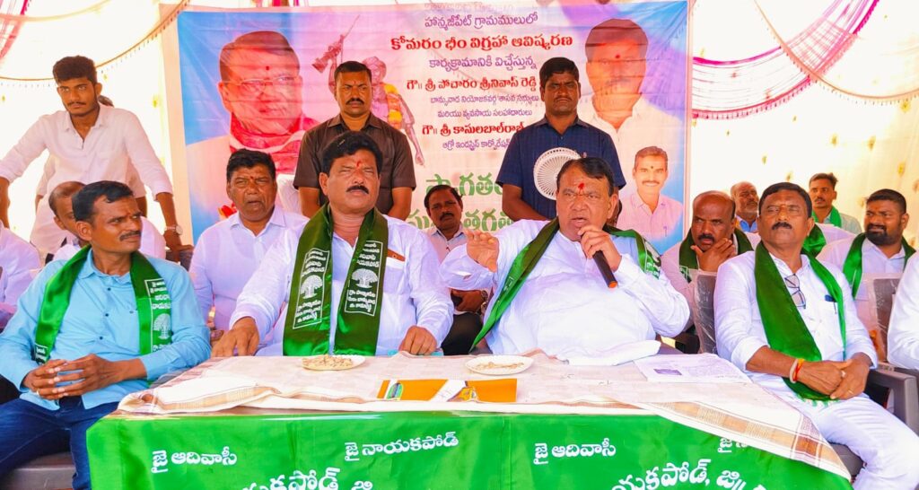 బాన్సువాడ మండలం హనుమాజీపేట గ్రామంలో గిరిజనులు కొమరం భీం జయంతి వేడుకలను ఘనంగా నిర్వహించి ఘన నివాళులు అర్పించారు. హన్మాజీపేట్ గ్రామంలో నూతనంగా ఏర్పాటు చేసిన కొమురం భీమ్ విగ్రహాన్ని పోచారం ఆవిష్కరించారు. పోచారం వెంట ఆగ్రోస్ చైర్మన్ కాసుల బాలరాజు కార్యక్రమాల్లో పాల్గొన్నారు.