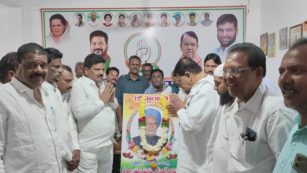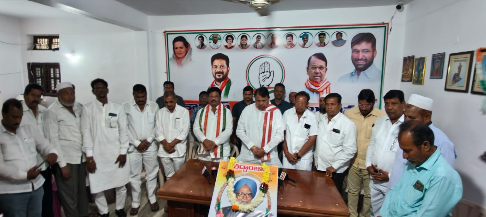 భారత దేశ మాజీ ప్రధాని డా. మన్మోహన్ సింగ్ గ మృతి పట్ల ప్రగాఢ సానుభూతి తెలుపుతూ,బాన్సువాడ పట్టణ కేంద్రంలోని పోచారం శ్రీనివాస్ రెడ్డి నివాసంలో మరియు బీర్కూర్ మండల కేంద్రంలోని గాంధి చౌక్ వద్ద స్థానిక ప్రజాప్రతినిధులు, నాయకులతో కలిసి డా. మన్మోహన్ సింగ్ చిత్రపటానికి పూలమాల వేసి నివాళులు అర్పించి, వారి పవిత్ర ఆత్మకు శాంతి చేకూరాలని భగవంతున్ని ప్రార్థించిన తెలంగాణ రాష్ట్ర ప్రభుత్వ వ్యవసాయ సలహాదారులు, బాన్సువాడ నియోజకవర్గ శాసన సభ్యులు పోచారం శ్రీనివాస్ రెడ్డి , రాష్ట్ర ఆగ్రోస్ ఛైర్మెన్ కాసుల బాలరాజు.
