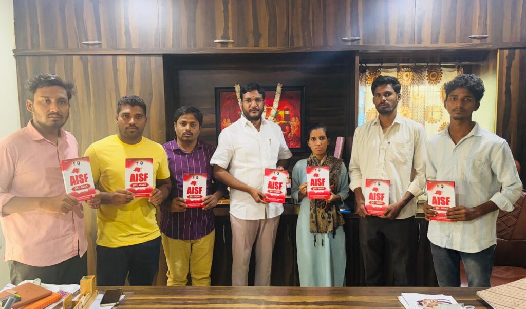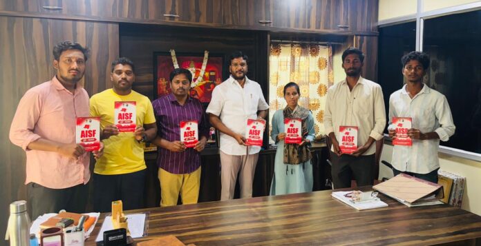 అఖిల భారత విద్యార్థి సమాఖ్య (ఏఐఎస్ఎఫ్) అధ్వర్యంలో ఏఐఎస్ఎఫ్ ఈరోజు తెలంగాణ రాష్ట్ర సమితి డైరీ పట్టణంలోని ఉషోదయ జూనియర్ కాలేజ్ విద్యాసంస్థల చైర్మన్ “దుష్యత్” చేతుల మీదుగా ఆవిష్కరణ చేయడం జరిగింది. ఈ సందర్భంగా అయిన మాట్లాడుతూ ఏఐఎస్ఎఫ్ విద్యార్థి సంఘం అద్యయనం, పోరాటం అనే నినాదం తో దేశం లోనే విద్య రంగ ప్తెనా దేశ వ్యాప్తంగా పోరాటాలు చేస్తున్న సంఘం ఏఐఎస్ఎఫ్ విద్యార్థి సంఘ అని అయిన అన్నారు.కాబట్టి విద్యార్థులు ఏఐఎస్ఎఫ్ విద్యార్థులలో చేరాలని అన్నారు.