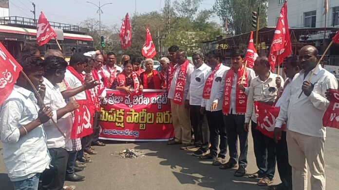 వామపక్ష పార్టీల ఆధ్వర్యన ధర్నా చౌక్ లో నిరసన