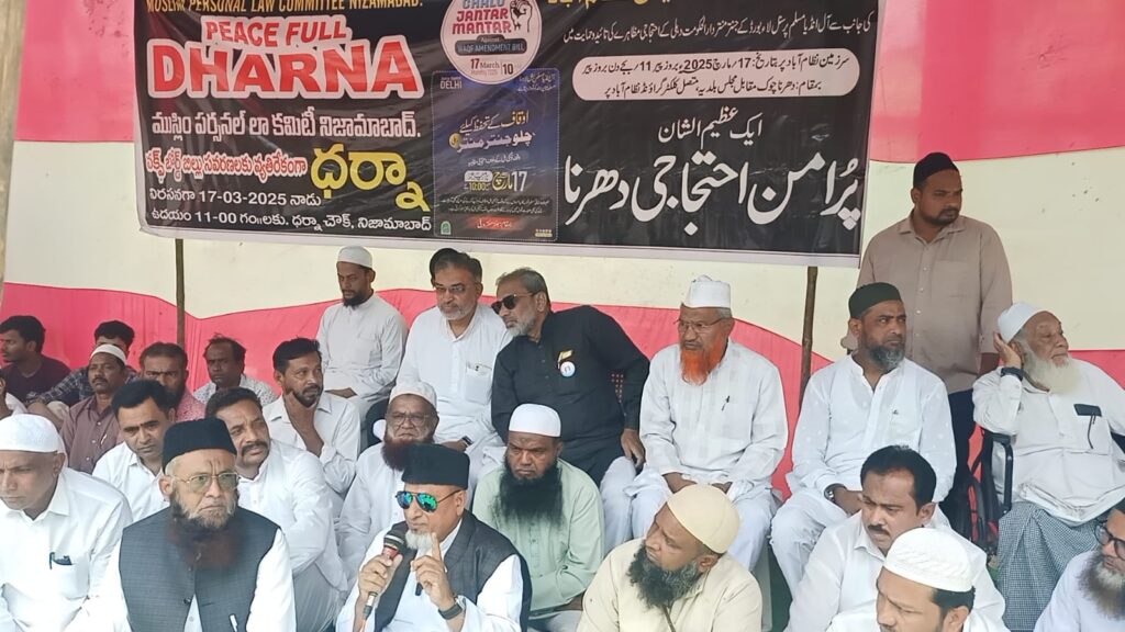 వక్ఫ్ బోర్డుపై కేంద్ర ప్రభుత్వం తన పెత్తనం చలయించడానికి కుట్ర పన్నుతోందని ముస్లిం మత సంస్థల నాయకులు తీవ్రంగా ఆగ్రహం వ్యక్తం చేశారు.వక్ఫ్ బోర్డులో సవరణల పేరుతో ముస్లింల ఆస్తులపై హక్కును క్రమంగా బలహీనపరిచే ప్రయత్నం చేస్తున్నదని ముస్లిం పండితులు ఆరోపించారు. సోమవారం ముస్లిం పర్సనల్ లా కమిటీ ఆధ్వర్యంలో నిజామాబాద్ ధర్నా చౌక్లో భారీ నిరసన కార్యక్రమం నిర్వహించారు. ముస్లిం మత సంస్థల నేతలతో పాటు మాల మహానాడు వర్కింగ్ ప్రెసిడెంట్ నిరాడి లక్ష్మణ్ కూడా పాల్గొని ముస్లింల హక్కులను కాపాడాలని ప్రభుత్వాన్ని డిమాండ్ చేశారు.