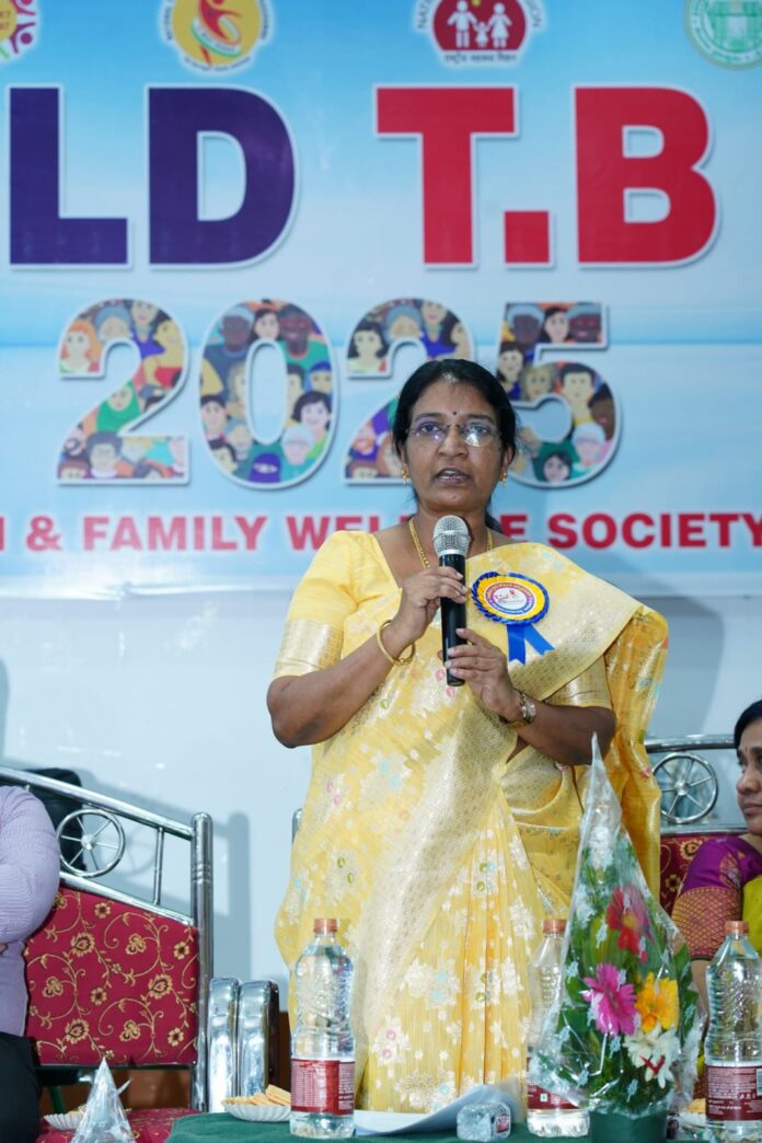 జిల్లా టిబి అధికారి డాక్టర్ దేవినాగేశ్వరి టిబి కార్యక్రమం గురించి సంక్షిప్త వివరణ ఇవ్వడం జరిగింది అనంతరం ఈ కార్యక్రమానికి ముఖ్య అతిధి గా హాజరైనటువంటి జిల్లా వైద్య మరియు ఆరోగ్య శాఖ అధికారిని డాక్టర్ బి రాజశ్రీ మాట్లాడుతూ ప్రభుత్వ, ప్రైవేట్, స్వచ్చంద సంస్థలు మరియు ప్రజలందరి భాగస్వామ్యం తో మాత్రమే జిల్లా నుండి క్షయ ను నిర్ములించవచ్చు , క్షయ వ్యాధి పట్ల నింద,వివక్షత చూపించకూడదు అని అన్నారు, మందులు క్రమం తప్పకుండా వాడాలి లేని పక్షం లో అది తిరగబడి మందులకు లొంగని టిబి గా మారి ప్రాణంతకంగా మరి అవకాశం ఉంది కావున టిబి రోగులు పూర్తి కాలం చికిత్స తీసుకోవాలని సూచించారు. టిబి పరీక్షలు, మందులు పూర్తిగా ఉచితంగా లభిస్తాయి కావున ప్రజలు ఈ అవకాశాలను వినియోగించుకోవాలి సూచించారు. చికిత్స తీసుకున్నంత కాలము పౌష్టికహర నిమిత్తము రోగి ఖాతా లో నెల నెల 1000/- నేరుగా జమ చేయడం జరుగుతుంది అని ఈ సందర్బంగా తెలిపారు.