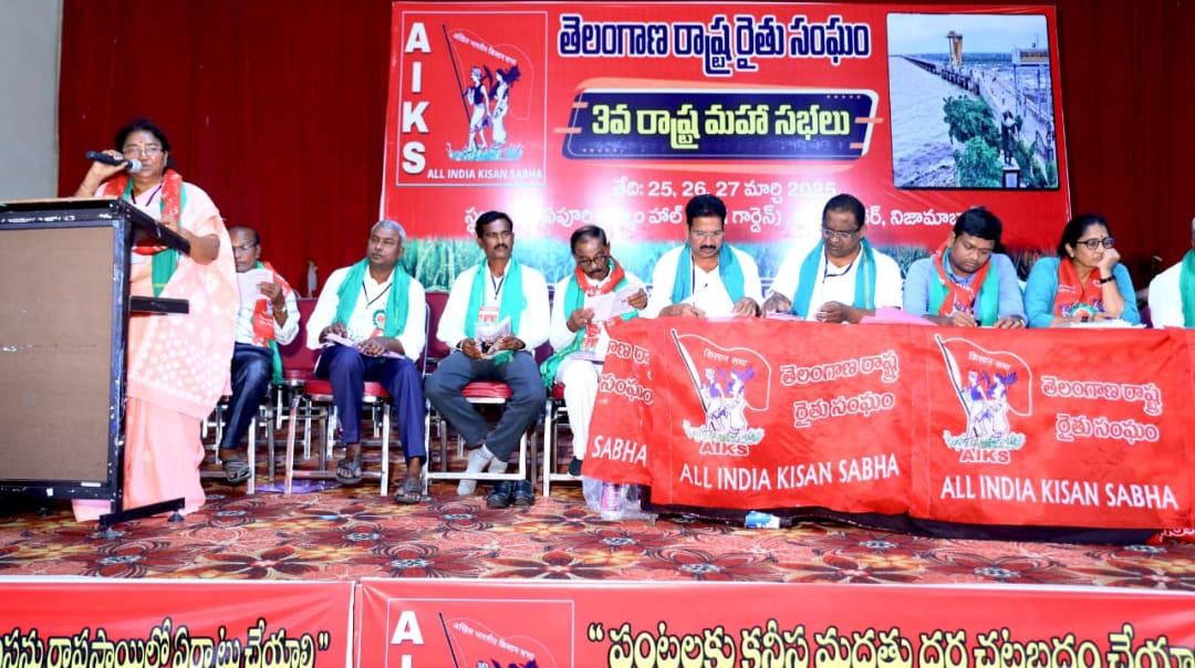 తెలంగాణ రాష్ట్ర రైతు సంఘం తృతీయ మహాసభలు మార్చి 25, 26, 27 తేదీలలో నిజామాబాద్ జిల్లాలో విజయవంతంగా ముగిసాయి. రాష్ట్ర ప్రధాన కార్యదర్శి కార్యక్రమాల రిపోర్టును ప్రవేశపెట్టారు. ఈ రిపోర్టుపై 32 మంది చర్చలలో పాల్గొన్నారు. నివేదిక ఏకగ్రీవంగా ఆమోదించబడింది.14 తీర్మానాలను ఏకగ్రీవంగా ఆమోదించి 109 మందితో రాష్ట్ర కమిటీ ఏర్పాటు చేసి అధ్యక్షా ప్రధాన కార్యదర్శి తో పాటు 21 మంది రాష్ట్ర ఆఫీస్ బేరర్స్ గా ఎన్నుకోబడ్డారు . అధ్యక్షులుగా భాగం హేమంత రావు, ప్రధాన కార్యదర్శిగా పశ్యపద్మ తిరిగి ఎన్నిక కావడం. ఉపాధ్యక్షులుగా ఉజ్జిని యాదగిరిరావు, కంజర భూమయ్య, కొప్పోజు సూర్యనారాయణ, కొల్లూరు రాజయ్య, దొండపాటి రమేశ్,వి. ఎస్ ప్రసాద్ శాస్త్రి, ప్రభు లింగం, నెట్టెం నారాయణ, మిడకంటి వెంకట్ రెడ్డి, బొల్లు ప్రసాద్ ఎన్నికయ్యారు. రాష్ట్ర కార్యదర్శులుగా వర్ల వెంకటయ్య, కంబాల శ్రీనివాస్ , చంద్ర నరేంద్ర కుమార్ , చిలక దేవి దాస్ , దేవ భక్తుని సంద్య , కోశాధికారిగా ఎన్నికయ్యారు. నూతనంగా ఎన్నికైన కౌన్సిల్లోఎన్నికల సందర్భంగా రాష్ట్ర పాలకులు ఇచ్చిన హామీలన్నింటిని అమలు చేయటానికి యుద్ధ ప్రాతిపదికన చర్యలు తీసుకోవాలని డిమాండ్ చేస్తూ కలెక్టర్ కార్యాలయాల ముందు ఏప్రిల్ 8వ తారీఖున ధర్నాలు నిర్వహించాలి. అని పిలుపునివ్వడం జరిగింది. మహాసభ ఆమోదించిన తీర్మానాలు