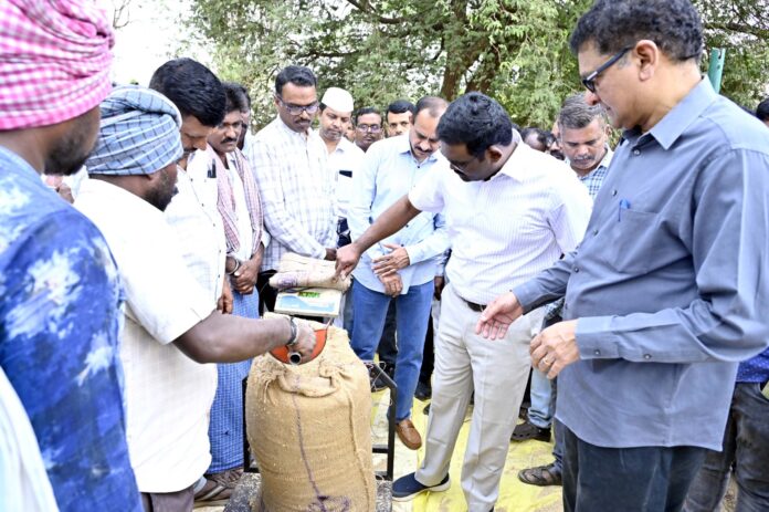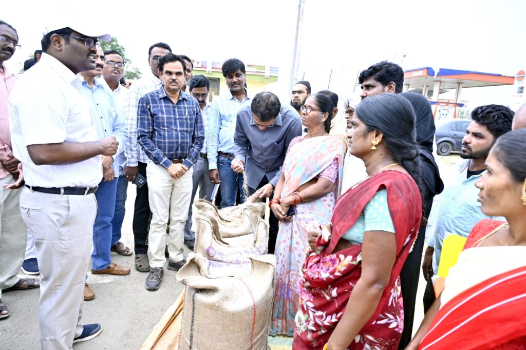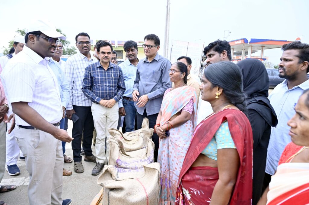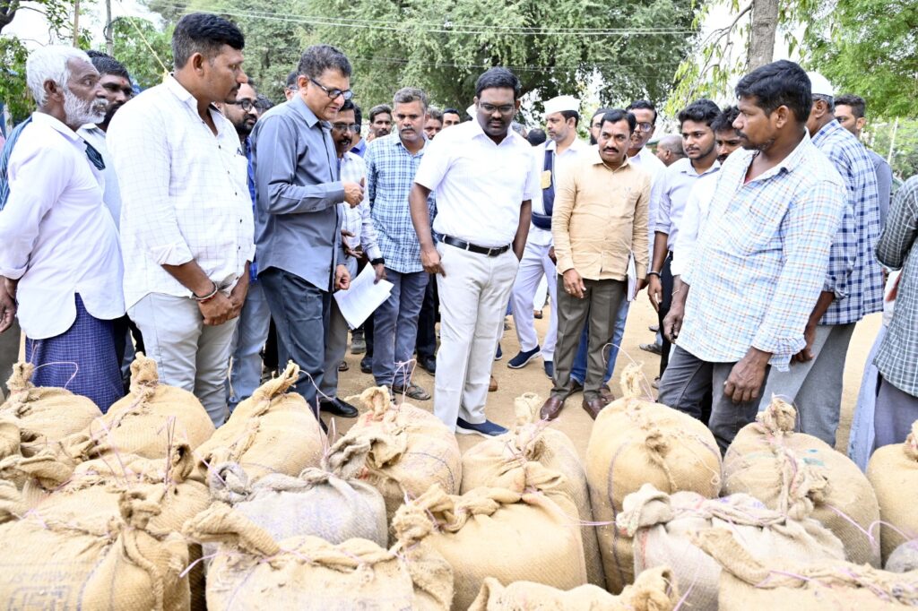 వర్ని మండలం జాకోరా, జలాల్పూర్ గ్రామాలలో నెలకొల్పిన ధాన్యం కొనుగోలు కేంద్రాలను కలెక్టర్ రాజీవ్ గాంధీ హనుమంతు గురువారం అదనపు కలెక్టర్ కిరణ్ కుమార్ తో కలిసి పరిశీలించారు. రైతుల నుండి ధాన్యం సేకరిస్తున్న ప్రక్రియను పరిశీలించి, కేంద్రం నిర్వాహకులను వివరాలు అడిగి తెలుసుకున్నారు. ఇప్పటివరకు ఎంత పరిమాణంలో సన్నరకం, దొడ్డురకం ధాన్యాన్ని సేకరించారు, ట్రక్ షీట్స్ వచ్చాయా, బిల్ టాగ్ అయ్యిందా, కొత్త గన్నీ బ్యాగులు అందాయా అని ఆరా తీశారు. గత ఏడాది ఇదే సీజన్ లో ఎంత పరిమాణంలో ధాన్యం సేకరించారు, ఈసారి రైతులు ఎన్ని బస్తాల ధాన్యం తరలించేందుకు అవకాశం ఉంది అని కొనుగోలు కేంద్రాల నిర్వాహకుల నుండి వివరాలు సేకరించారు. కొనుగోలు కేంద్రాలకు కాకుండా రైతులు ఎవరైనా ప్రైవేట్ వ్యాపారులకు ధాన్యం విక్రయిస్తున్నారా? అని కలెక్టర్ ప్రశ్నించగా, అకాల వర్షాలు కురిసే ప్రమాదం ఉండడంతో కొంతమంది రైతులు ధాన్యం తడిచిపోతుందనే ఉద్దేశ్యంతో పచ్చి ధాన్యాన్ని ప్రైవేట్ వ్యాపారులకు విక్రయిస్తున్నారని, అత్యధిక మంది కొనుగోలు కేంద్రాలకే ధాన్యం తెస్తున్నారని స్థానిక అధికారులు సమాధానం ఇచ్చారు. తేమ కొలిచే యంత్రం ద్వారా ధాన్యం తేమ శాతాన్ని, క్యాలిపర్ సహాయంతో ధాన్యం నిర్ణీత కొలతలతో కూడి ఉన్నదా లేదా అని స్వయంగా పరిశీలించారు. అకాల వర్షాలకు ధాన్యం తడిసిపోకుండా, సరిపడా టార్పాలిన్లను అందుబాటులో ఉంచాలని, అన్ని కేంద్రాలకు అవసరమైన మేర తూకం యంత్రాలను సమకూర్చాలని, గన్నీ బ్యాగుల కొరత తలెత్తకుండా చర్యలు తీసుకోవాలని అధికారులను ఆదేశించారు. ధాన్యం నిల్వలను వెంటదివెంట నిర్దేశిత రైస్ మిల్లులకు తరలించేందుకు సకాలంలో లారీలు అందుబాటులో ఉండేలా చూడాలన్నారు. రైతులకు ఎలాంటి ఇబ్బందులు తలెత్తకుండా కొనుగోలు కేంద్రాల్లో అన్ని మౌలిక సదుపాయాలు కల్పించాలని సూచించారు. ధాన్యం కొనుగోలుకు సంబంధించిన వివరాలను ఎప్పటికప్పుడు ఓపీఎంఎస్ లో నమోదు చేయాలని అన్నారు. తరుగు, కోతలు వంటి వాటికి ఆస్కారం లేకుండా పకడ్బందీ పర్యవేక్షణ జరపాలని, ఏ దశలోనూ రైతులు ఇబ్బందులు పడకుండా అవసరమైన అన్ని జాగ్రత్తలు తీసుకోవాలని కలెక్టర్ అధికారులకు హితవు పలికారు. కాగా, రోడ్లపై పెద్ద ఎత్తున ధాన్యం ఆరబెట్టడాన్ని గమనించిన కలెక్టర్, అధికారులకు ప్రత్యేక సూచనలు చేశారు. రోడ్లపై ధాన్యం ఆరబెట్టడం, కుప్పలుగా చేసి నిలువ ఉంచడం వల్ల ప్రమాదాలు జరిగేందుకు ఆస్కారం ఉంటుందన్నారు. దీనిని దృష్టిలో పెట్టుకుని ఖాళీ స్థలాలు, మైదాన ప్రాంతాలలో ధాన్యం ఆరబెట్టుకునేలా రైతులకు అవగాహన కల్పించాలని అన్నారు. ఒకవేళ ఖాళీ స్ధలాలు అందుబాటులో లేని పక్షంలో, ధాన్యం కోతలు పూర్తయిన వరి చేలను ధాన్యం ఆరబెట్టుకునేందుకు వినియోగించుకునేలా