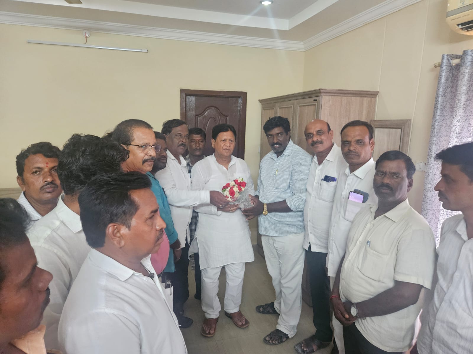 నూతన కార్యవర్గం ఏర్పాటు అయిన సందర్భంగా ప్రెస్ క్లబ్ ప్రింట్ మీడియా అధ్యక్షులు శ్రీనివాస్ (వాసు), గౌరవ అధ్యక్షులు తేళ్ల రవి, ముఖ్య సలహాదారుడు బలరామరాజు, కార్యదర్శి కృష్ణ, కోశాధికారి మొహమ్మద్ అహ్మద్, లతో కలిసి కమిటీ ప్రతినిధులు, సభ్యులు మాజీ మంత్రి బోధన్ ఎమ్మెల్యే సుదర్శన్ రెడ్డి ని గురువారం ఇరిగేషన్ కార్యాలయంలో కలవడం జరిగింది. ఎమ్మెల్యే సుదర్శన్ రెడ్డిని శాలువాతో సత్కరించి ప్రింట్ మీడియా నూతన కార్యవర్గానికి ఎమ్మెల్యే శుభాకాంక్షలు తెలియజేయడం జరిగింది.