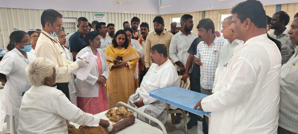 వారంలో మూడుసార్లు డయాలసిస్ చేయించుకుంటున్నారు.గత ఆరు నెలలలో ఆసుపత్రిలో 348 ఫ్యామిలీ ప్లానింగ్ ఆపరేషన్లు జరిగాయి, ఫ్యామిలీ ప్లానింగ్ ఆపరేషన్ మన ఆసుపత్రిలో అందుబాటులో ఉంది. పేద ప్రజల దృష్టిలో, నా దృష్టిలో ఆసుపత్రి ఒక దేవాలయం, డాక్టర్లే దేవుళ్ళుఅత్యవసర పరిస్థితిలో ప్రాణాలు కాపాడేది ఎమ్మెల్యేలు,మంత్రులు కాదు డాక్టర్లే ప్రాణాలు కాపాడుతారు అలాంటి డాక్టర్లను గౌరవించుకుందాం ప్రైవేట్ అంబులెన్స్ల సమస్య పోలీసు వారితో మాట్లాడం వారు సమస్యను పరిష్కరిస్తామని చెప్పారు.