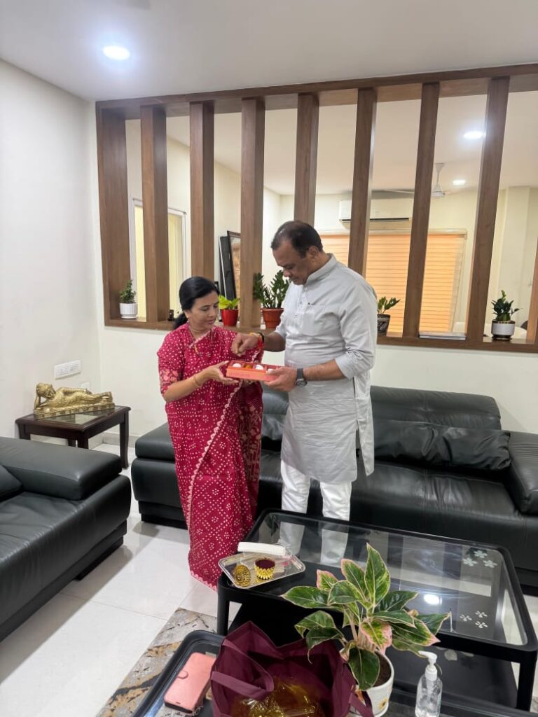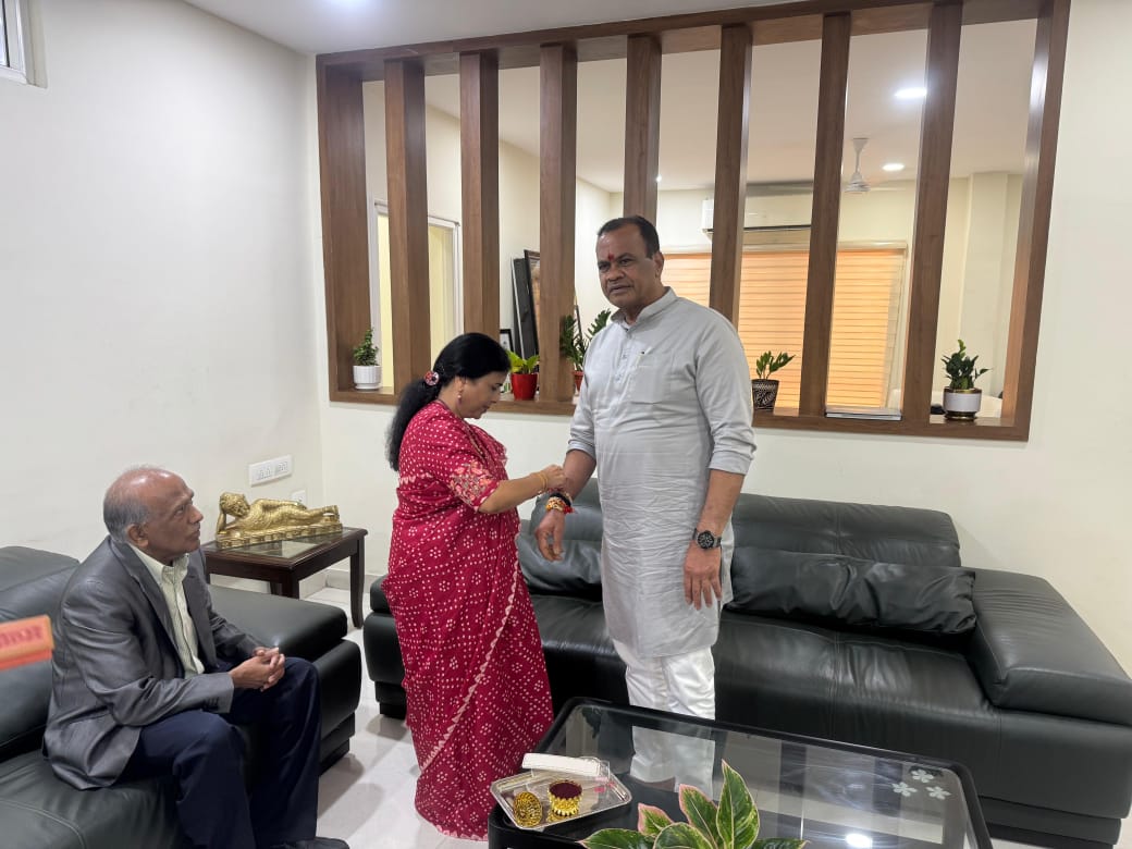 రాఖీ పౌర్ణమి సందర్భంగా రాష్ట్ర మంత్రి కోమటిరెడ్డి వెంకటరెడ్డి ని మర్యాదపూర్వకంగా కలిసి రాఖీ కట్టిన టీపీసీసీ వైస్ ప్రెసిడెంట్ ఝాన్సీ రాజేందర్ రెడ్డి . ఈ సందర్భంగా మంత్రి కి తిలక ధారణ చేసి, ఆప్యాయంగా రాఖీ కట్టి, ఆయురారోగ్యాలు, సర్వాంగ సౌఖ్యం కలగాలని ఆకాంక్షించారు. సహోదరుడు సహోదరి బంధానికి ప్రతీకగా జరుపుకునే ఈ పండుగలో భాగంగా మంత్రి కి మిఠాయిలు తినిపించారు.