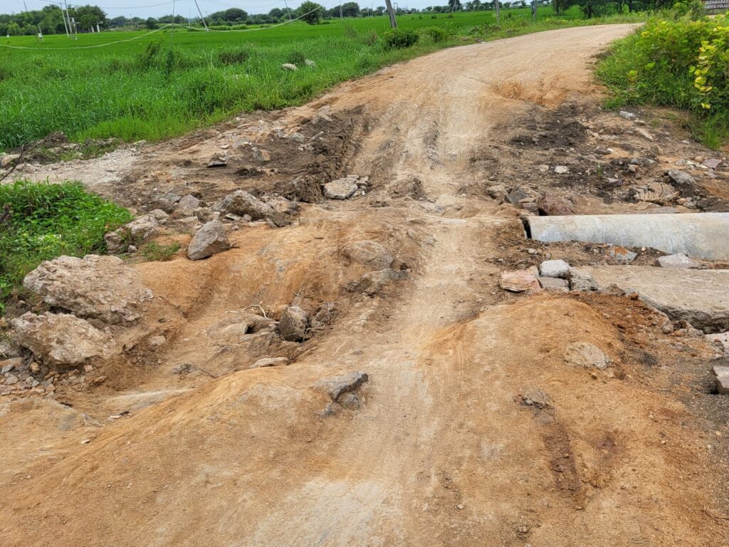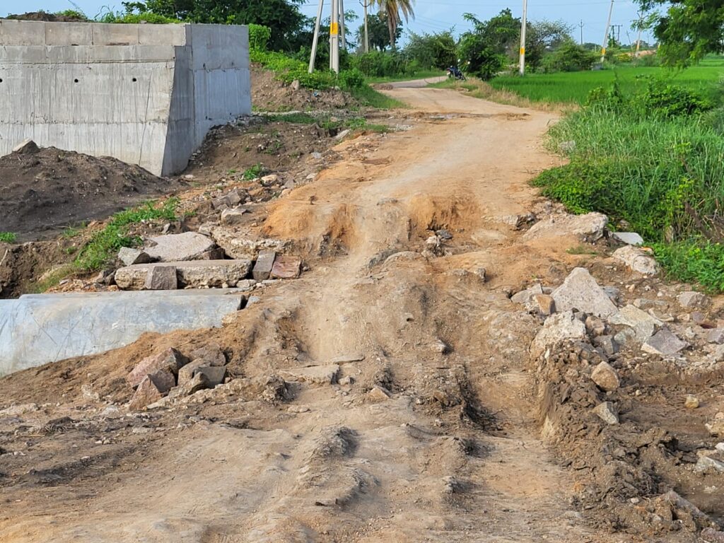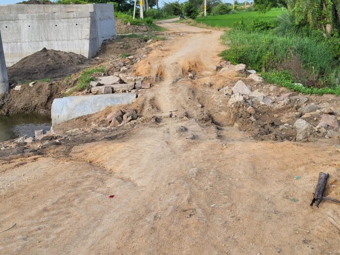కొల్లూరు వద్ద అసంపూర్తిగా కల్వర్ట్ పనులు