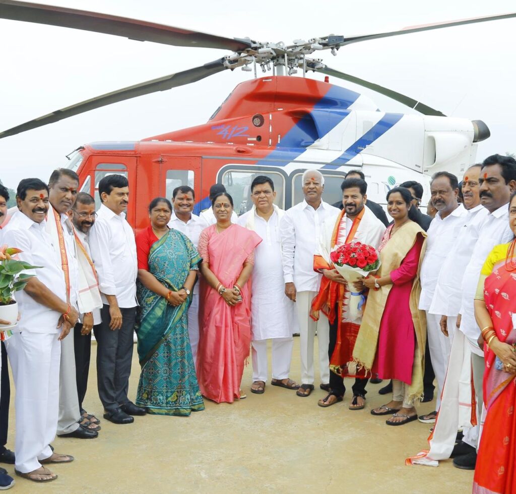 హెలికాప్టర్ ద్వారా గద్దెల ప్రాంతానికి చేరుకున్న ముఖ్యమంత్రి రేవంత్ రెడ్డికి వరంగల్ ఎంపీ డాక్టర్ కడియం కావ్య, ఎమ్మెల్యే కడియం శ్రీహరి స్వాగతం పలికారు.