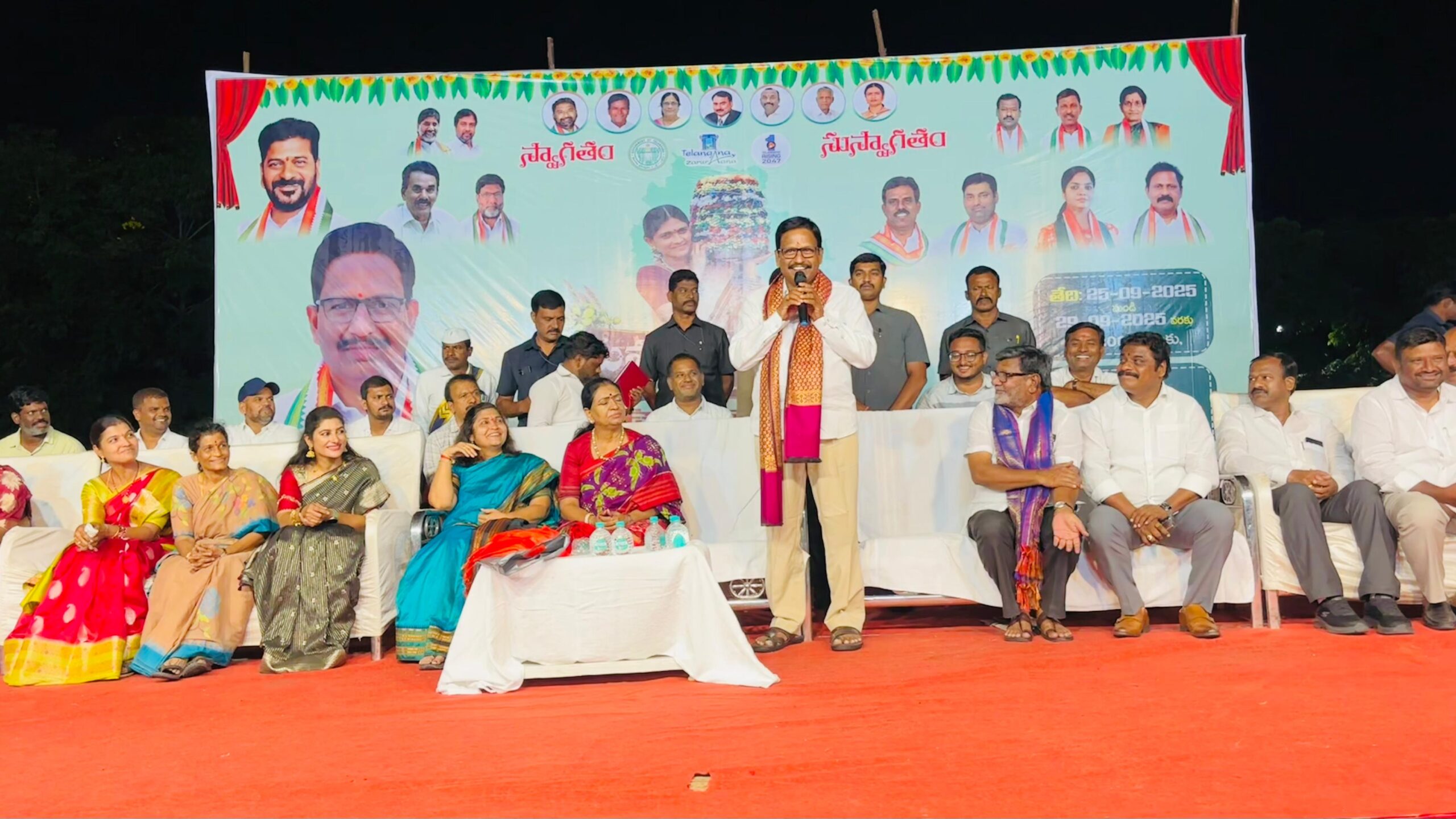 బతుకమ్మ సంబరాల్లో పాల్గొన్న ఎమ్మెల్యే సతీమణి యెన్నం ప్రసన్న లక్ష్మి ,మహిళలు, యువతులతో కలిసి బతుకమ్మ ఆడిన ఎంపి , ఎమ్మెల్యే సతీమణి , జిల్లా కలెక్టర్ ఉత్సాహంగా బతుకమ్మ ఆడి పాడిన మహిళలు, యువతులు తీరొక్క పూలతో బతుకమ్మలను పేర్చి నృత్యాలు చేసిన మహిళలు నగరపాలక సంస్థ ఆధ్వర్యంలో అంగరంగ వైభవంగా బతుకమ్మ సంబురాలు ఆత్మీయత, ఆధ్యాత్మికత, సంస్కృతి సాంప్రదాయాలకు ప్రతీక బతుకమ్మ పండుగ అని మహబూబ్ నగర్ ఎమ్మెల్యే యెన్నం శ్రీనివాస్ రెడ్డి అన్నారు. నాల్గవ రోజు బతుకమ్మ సంబరాలు మహబూబ్ నగర్ నగరంలోని ప్రభుత్వ బాలుర జూనియర్ కళాశాల మైదానంలో మహబూబ్ నగర్ నగరపాలక సంస్థ ఆధ్వర్యంలో అంగరంగ వైభవంగా జరిగాయి. బతుకమ్మ వేడుకలకు మహబూబ్ నగర్ ఎంపి డికె అరుణ , జిల్లా కలెక్టర్ విజయేందిర బోయి తో కలిసి ఆయన ముఖ్య అతిథిగా హాజరయ్యారు. ఈ సందర్భంగా ఆయన మాట్లాడుతూ ఉత్సాహంగా మహిళలు, యువతులు తీరొక్క పూలను పేర్చి బతుకమ్మ లను సిద్ధం చేసి ఈ వేదిక దగ్గకు తీసుకుని వచ్చి అందరూ కలిసి మెలిసి బతుకమ్మ వేడుకలు ఘనంగా జరుపుకోవడం సంతోషగా ఉందన్నారు. ఎంపి మాట్లాడుతూ మహిళలందరికీ బతుకమ్మ పండుగ శుభాకాంక్షలు తెలియజేశారు. కలిసిమెలిసి ఘనంగా బతుకమ్మ పండుగ జరుపుకోవాలని ఆమె అన్నారు.ఈ కార్యక్రమంలో మైనారిటీ ఫైనాన్స్ కార్పోరేషన్ చైర్మన్ ఓబేదుల్లా కొత్వాల్, ముడా చైర్మన్ లక్ష్మణ్ యాదవ్, మార్కెట్ కమిటీ చైర్ పర్సన్ బెక్కెరి అనిత మధుసూదన్ రెడ్డి, మాజీ మున్సిపల్ చైర్మన్ ఆనంద్ గౌడ్, సీనియర్ నాయకులు వినోద్ కుమార్, డిసిసి ప్రధాన కార్యదర్శి సిరాజ్ ఖాద్రీ,, యూత్ కాంగ్రెస్ అధ్యక్షులు అవేజ్, పట్టణ కాంగ్రెస్ పార్టీ కార్య నిర్వాహక అధ్యక్షులు అజ్మత్, హన్వాడ మండల కాంగ్రెస్ పార్టీ మహిళా అధ్యక్షురాలు నవనీత, కాంగ్రెస్ పార్టీ నాయకులు సతీష్, మాజీ మున్సిపల్ కౌన్సిలర్లు ప్రశాంత్ , ఖాజా పాషా, రాషెద్ ఖాన్, చిన్న, మునీర్, జాజి మొగ్గ నర్సింహులు, నాయకులు అక్బర్, మోయీజ్, పీర్ మహ్మద్ సాదిక్ మున్సిపల్ కార్పొరేషన్ కమిషనర్ ప్రవీణ్ కుమార్ రెడ్డి తదితరులు పాల్గొన్నారు.