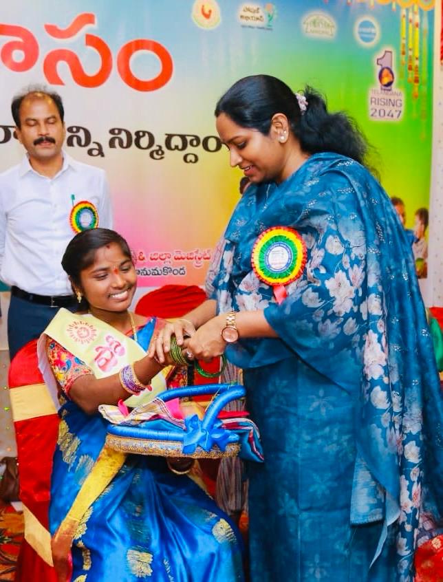 మాతా, శిశు సంపూర్ణ ఆరోగ్య రక్షణే లక్ష్యంగా రాష్ట్ర ప్రభుత్వం ముందు కెళ్తోందని వరంగల్ ఎంపీ డాక్టర్ కడియం కావ్య అన్నారు. ప్రతి ఏడాది పోషణ్ అభియాన్ పేరిట మాసోత్స వాలను నిర్వహిస్తున్నదని తెలిపారు. హనుమకొండ మిలీనియం కన్వెన్షన్ లో గురువారం ఐసీడీఎస్ ఆధ్వర్యంలో నిర్వహించిన పోషణ మాసం ముగింపు ఉత్సవానికి వరంగల్ పార్లమెంట్ సభ్యురాలు ముఖ్య అతిథిగా హాజరయ్యారు. ఈ సందర్భంగా ఎంపీ మాట్లాడుతూ, మహిళలు, గర్భిణీలు, చిన్నారుల ఆరోగ్య సంరక్షణలో పోషకాహారం ప్రాముఖ్యతను వివరించారు. ప్రతి కుటుంబం ఆరోగ్యవంతంగా ఉండేందుకు సమాజంలో పోషణ పై అవగాహన పెంపొందించడం అత్యంత అవసరమన్నారు. ఐసిడిఎస్ లబ్ధిదారులైన గర్భిణీ స్త్రీల పోషణ స్థితిని మెరుగుపరిచినట్లయితే మన భావితరాల పిల్లలు ఆరోగ్యంగా జన్మనివ్వడం జరుగుతుంది అన్నారు. భావితరాలు పోషణ లోపం లేకుండా ఆరోగ్యవంతమైన తెలంగాణ ఏర్పడుతుందన్నారు.