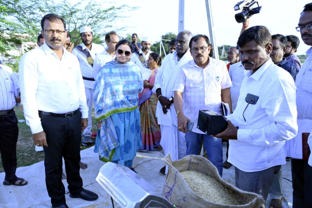 ఖరీఫ్ సీజన్ లో రైతులు పండించిన వరి ధాన్యం సేకరణ కోసం నిజామాబాద్ జిల్లాలో ప్రణాళికాబద్దంగా ఏర్పాట్లు చేశారని నిజామాబాద్ ఉమ్మడి జిల్లాకు స్పెషల్ ఆఫీసర్ రాష్ట్ర గిడ్డంగుల సంస్థ మేనేజింగ్ డైరెక్టర్, సీనియర్ ఐ.ఏ.ఎస్ అధికారిణి లక్ష్మి జిల్లా కలెక్టర్ వినయ్ కృష్ణారెడ్డి ను అభినందించారు. కలెక్టర్, అదనపు కలెక్టర్ కిరణ్ కుమార్ లతో కలిసి బుధవారం ఆమె ఎడపల్లి మండల కేంద్రంలో ఐ.కె.పీ, సహకార సంఘాల ఆధ్వర్యంలో కొనసాగుతున్న వరి ధాన్యం కొనుగోలు కేంద్రాలను సందర్శించారు. కేంద్రాలలో అందుబాటులో ఉన్న సదుపాయాలను పరిశీలించారు. రైతుల నుండి ఇప్పటివరకు సేకరించిన ధాన్యం నిల్వల వివరాలతో కూడిన రికార్డులను తనిఖీ చేశారు. కొనుగోలు కేంద్రాలకు ధాన్యం తెచ్చిన రైతులను పలుకరించి, ఏమైనా ఇబ్బందులు ఉన్నాయా అని ఆరా తీశారు. తమకు ఎలాంటి ఇబ్బందులు లేవని, నిర్ణీత ప్రమాణాలకు అనుగుణంగా ధాన్యం తెచ్చిన వెంటనే తూకం వేసి, ధాన్యాన్ని మిల్లులకు తరలిస్తున్నారని రైతులు తెలుపడం పట్ల స్పెషల్ ఆఫీసర్ సంతృప్తి వ్యక్తం చేశారు. రాష్ట్రంలోనే మొట్టమొదటగా నిజామాబాద్ జిల్లాలో రైతులకు బిల్లుల చెల్లింపుల కోసం ట్యాబ్ ఎంట్రీలు చేస్తుండడం పట్ల కలెక్టర్ వినయ్ కృష్ణారెడ్డిని అభినందించారు. స్లాట్ బుకింగ్, ఎఫ్.ఏ.క్యూ ప్రమాణాల గురించి రైతులకు విస్తృత స్థాయిలో అవగాహన కల్పించాలని అధికారులకు సూచించారు. అన్ని కేంద్రాలలో ప్యాడీ క్లీనర్లు, ధాన్యం ఆరబట్టే యంత్రాలు, మాయిశ్చర్ మీటర్లు, గ్రెయిన్ క్యాలిపర్లు అందుబాటులో ఉండేలా చూడాలన్నారు. రైతులకు ఎలాంటి ఇబ్బందులు తలెత్తకుండా ధాన్యం సేకరణ ప్రక్రియ సజావుగా జరిగేలా కృషి చేయాలని సూచించారు.