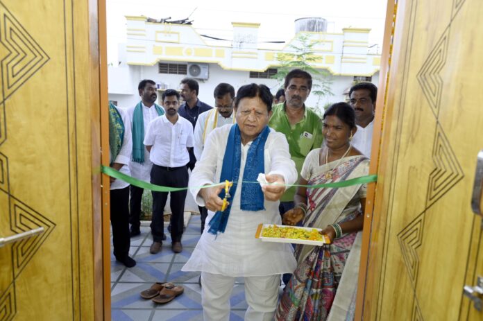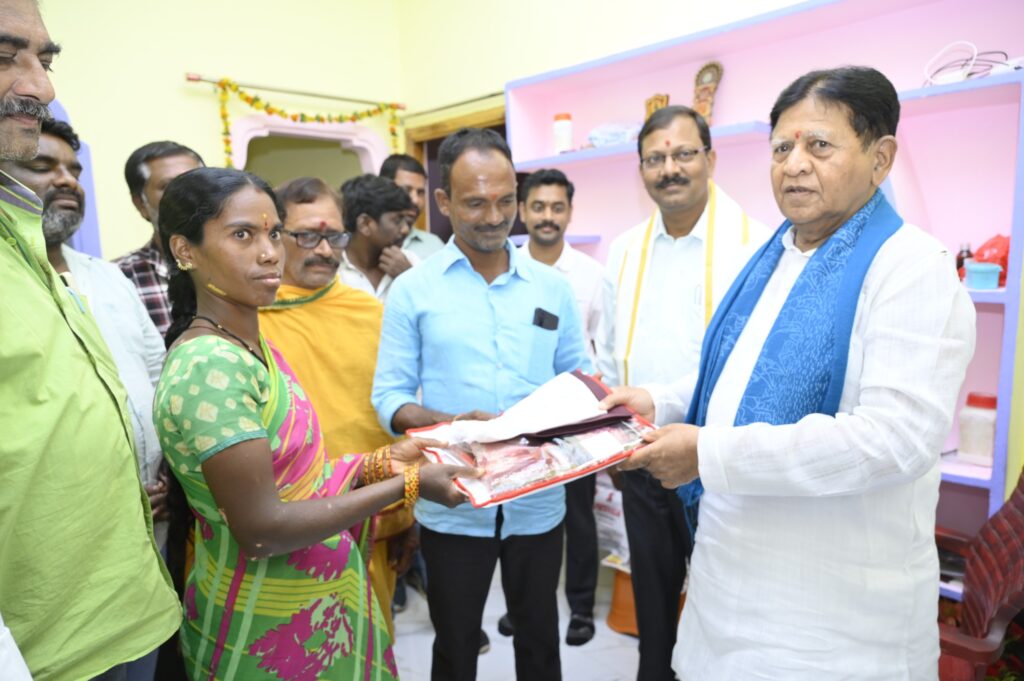 లబ్దిదారులతో గృహ ప్రవేశాలు చేయించిన ఎమ్మెల్యే, కలెక్టర్