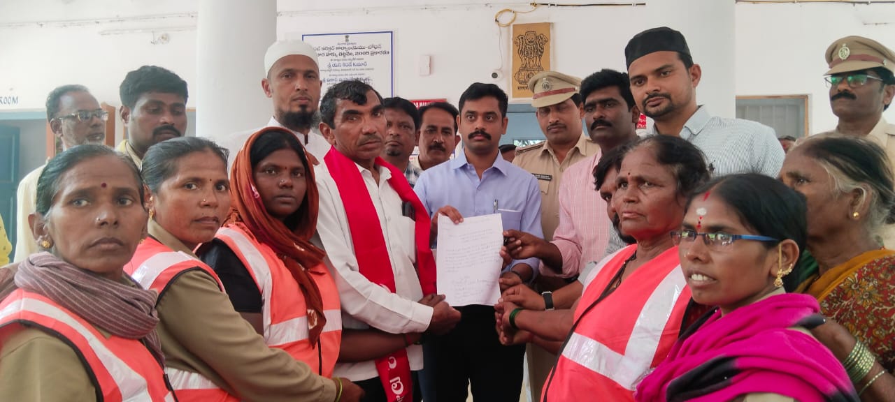 మృతి చెందిన కార్మికురాలికి 50 లక్షల ఎక్స్గ్రేషియా ఇవ్వాలని, ఇందిరమ్మ డబుల్ బెడ్ రూమ్ ఇవ్వాలని, వారి కుటుంబాన్ని ప్రభుత్వం ఆదుకోవాలంటూ డిమాండ్ చేస్తూ ఆందోళన చేశారు. సబ్ కలెక్టర్ వికాస్ మహాతో కి డిమాండ్ లతో కూడిన వినతి పత్రాన్ని అందించారు. తెలంగాణ ప్రగతిశీల మున్సిపల్ వర్కర్స్ యూనియన్ టి యు సి ఐ రాష్ట్ర నాయకులు బి. మల్లేష్, ఐ ఎఫ్ టి యు నాయకులు డి.పోశెట్టి, ఆమ్ ఆద్మీ పార్టీ నాయకులు జువేద్, మున్సిపల్ మాజీ వైస్ చైర్మన్ ఖదీర్ తదితరులు మాట్లాడుతూ బస్సు ప్రమాదంలో చనిపోయిన రాజం నాగమణికి 50 లక్షల ఎక్స్ గ్రేషియా ఇయ్యాలని, యాక్సిడెంట్ చేసిన బస్సు డ్రైవర్ నుండి ఆర్టీసీ డిపార్ట్మెంట్ నుండి నష్టపరిహారం ఇప్పించాలని, ప్రభుత్వపరంగా ఇందిరమ్మ డబుల్ బెడ్ రూమ్ ఇచ్చి ఆదుకోవాలని, కుటుంబంలో ఒకరికి ఉద్యోగం ఇవ్వాలని, మున్సిపల్ వారు ఉదయము పనులు చేయించేటప్పుడు కార్మికులకు ఇటువంటి ప్రమాదాలు జరగకుండా తగిన జాగ్రత్తలు తీసుకోవాలని, కార్మికులకు అందరికీ డ్రెస్సులు ఇవ్వాలని, కార్మికులను వేధింపులకు గురి చేయొద్దని, మహిళల చేత పురుషులు చేసే పనులను చేయిస్తూ ఇబ్బందులకు గురి చేయొద్దని డిమాండ్ చేశారు. చర్చలు జరిపిన సబ్ కలెక్టర్ వికాస్ మహా తో డిమాండ్లన్నింటిని కలెక్టర్ మరియు ప్రభుత్వం దృష్టికి తీసుకెళ్లి మృతి చెందిన రాజ నాగమణి కుటుంబాన్ని ప్రభుత్వపరంగా ఆదుకుంటామని హామీ ఇచ్చారు.