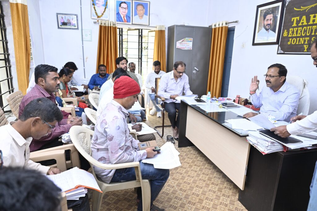 భూభారతి పెండింగ్ దరఖాస్తులను వేగవంతంగా పరిష్కరించాలని కలెక్టర్ వినయ్ కృష్ణారెడ్డి ఆదేశించారు. మంగళవారం ఎడపల్లి తహసిల్దార్ కార్యాలయాన్ని అదనపు కలెక్టర్ కిరణ్ కుమార్ తో కలిసి సందర్శించారు. తహసిల్దార్, ఇతర సిబ్బందితో భూభారతి, స్పెషల్ ఇంటెన్సివ్ రివిజన్ సన్నాహక అమలుపై సమీక్ష జరిపారు. భూభారతి రెవెన్యూ సదస్సులలో వచ్చిన దరఖాస్తులలో ఆయా మాడ్యుల్స్ లో ఎన్ని అర్జీలు పరిష్కరించారు, ఎన్ని పెండింగ్ లో ఉన్నాయి, ఎంత మందికి నోటీసులు ఇచ్చారు, క్షేత్రస్థాయి పరిశీలన ప్రక్రియ పూర్తయ్యిందా తదితర వివరాలను అడిగి తెలుసుకున్నారు. నిర్ణీత గడువు లోపు అన్ని దరఖాస్తులు పరిష్కారం అయ్యేలా చూడాలని ఆదేశించారు. దరఖాస్తులు తిరస్కరణ అయితే, అందుకు గల కారణాలు స్పష్టంగా పేర్కొనాలని సూచించారు. భూభారతి దరఖాస్తులకు అత్యంత ప్రాధాన్యత ఇవ్వాలని, ఆర్జీల పరిష్కారంలో జాప్యం జరుగకుండా రోజువారీగా దరఖాస్తుల పరిశీలనను పర్యవేక్షిస్తూ, వేగవంతంగా వాటిని పరిష్కరించేందుకు చిత్తశుద్ధితో కృషి చేయాలని కలెక్టర్ సూచించారు. అదేవిధంగా ఎన్నికల సంఘం మార్గదర్శకాలను అనుసరిస్తూ స్పెషల్ ఇంటెన్సివ్ రివిజన్ సన్నాహక ప్రక్రియను పకడ్బందీగా నిర్వహించాలని ఆదేశించారు. ఆయా కేటగిరీల వారీగా మ్యాపింగ్ నిర్వహిస్తున్న విధానాన్ని పరిశీలించి, పలు సూచనలు చేశారు. కలెక్టర్ వెంట తహసీల్దార్ దత్తాద్రి ఉన్నారు.