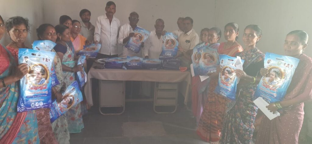 బోధన్ టౌన్ ద్రోణ:-బోధన్ నియోజకవర్గంలోని మావంది కలన్ గ్రామంలో ఈరోజు గ్రామా పంచాయతీ లో ఇందిరమ్మ మహిళా శక్తి పథకం కింద ఉచిత చీరల పంపిణీ చేశారు. ఈ కార్యక్రమంలో ముఖ్య అతిథిగా మాజీ సర్పంచ్ లక్ష్మయ్య డ్వాక్రా మహిళలు మొత్తం యిరువై ఆరు(26) గ్రూపులు ఉండగా రేండు వందల అరవై ఐదు(265) మందికి చీరలు పంపిణీ చేశామని చెప్పారు.ఈ సందర్భంగా ఆయన మాట్లాడుతూ కాంగ్రెస్ ప్రభుత్వం మహిళలు ఆర్థికంగా ఎదిగేందుకు ఎంతో ప్రోత్సహిస్తుందని ఇచ్చిన హామీలను నెరవేర్చినట్లు వివరించారు.