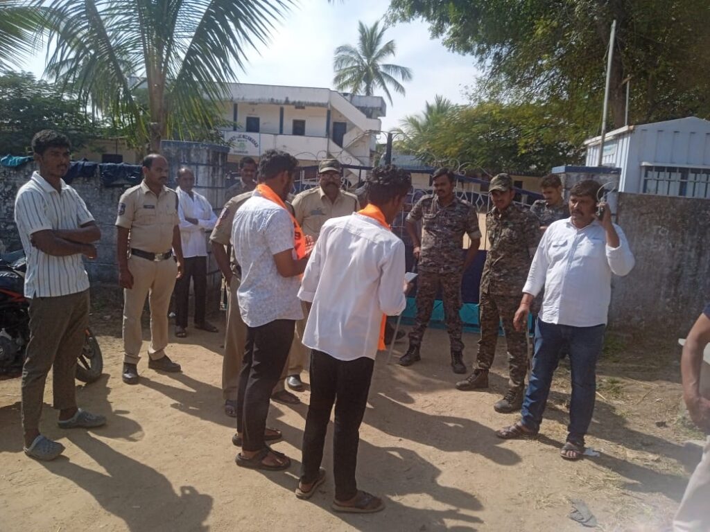 వసతి గృహం ఎదుట పోలీసుల భారీ బందోబస్తు