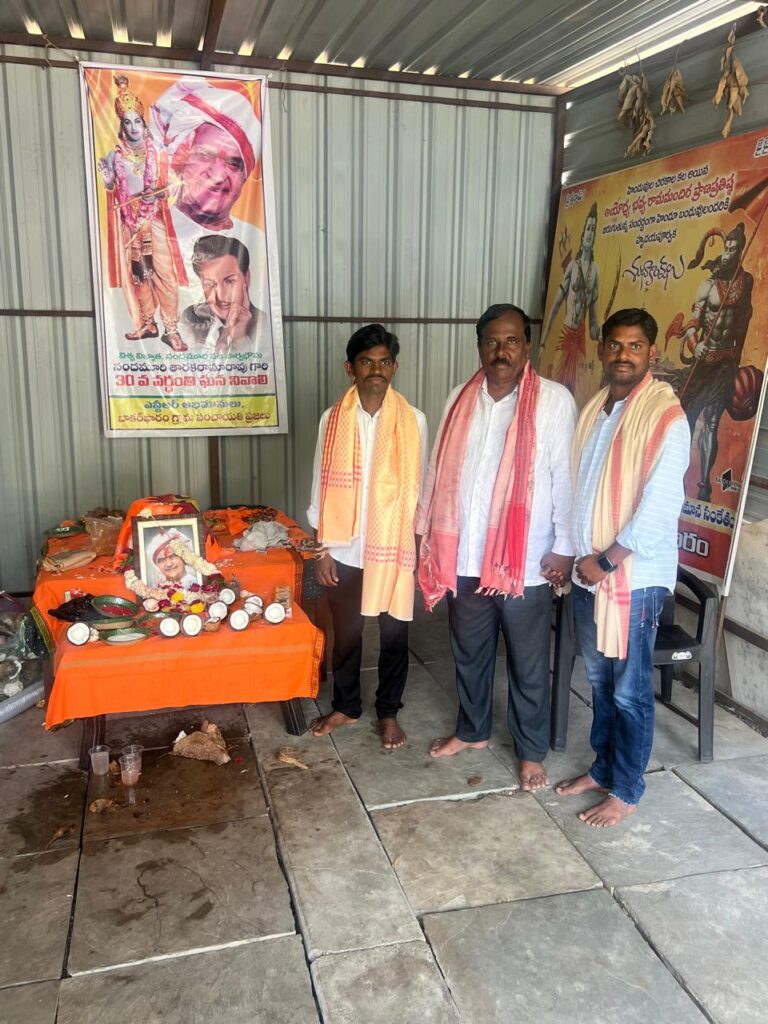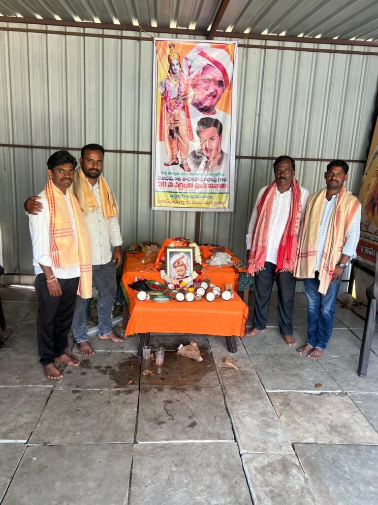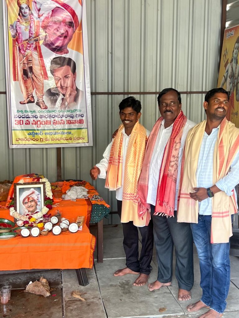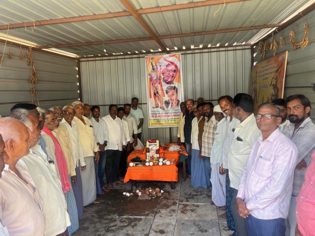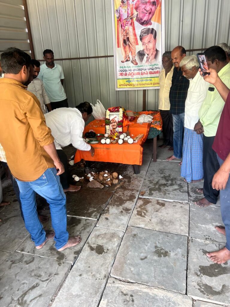 నందమూరి తారక రామారావు ప్రజలకు ఎనలేని సేవలు అందించడంతో ఆయన ప్రజల గుండెల్లో చిరస్థాయిగా చిరస్మరణీయులుగా నిలిచిపోయారని గ్రామ సర్పంచ్ శ్రీనివాసరావు అన్నారు. గ్రామంలో ఎన్టీఆర్ వర్ధంతి వేడుకలను ప్రజలు ఘనంగా నిర్వహించారు. ఆయన చిత్రపటానికి పూలమాలలు వేసి ఘన నివాళులు అర్పించారు. తెలుగు ప్రజలు ఎన్టీఆర్ ను ఆదర్శంగా తీసుకుని ప్రతి ఒక్కరు ప్రజలకు చేతనైన కాడికి సేవలు అందిస్తే మనము ప్రజల గుండెల్లో గూడు కట్టుకోవచ్చని సర్పంచ్ అన్నారు. బడుగు బలహీన వర్గాలకు ఆయన చేసిన సేవలను ప్రజలు ఎన్నటికీ మరువలేరన్నారు. మహిళలకు, బడుగు బలహీనవర్గాలకు, రిజర్వేషన్లు కల్పించి మేడారం రాజకీయంగా ఎదుగుదలకు కృషి చేశారన్నారు.పటేల్ పట్వారి వ్యవస్థను రూపుమాపి రైతులకు పట్టేదారు పాస్బుక్కులను అందించిన ఘనత ఎన్టీఆర్ దక్కిందన్నారు. ఆనాడు రైతులు భూముల రికార్డులు సక్రంగా లేక ఎన్నో ఇబ్బందులకు గురయ్యారని ఎన్టీఆర్ తీసుకొచ్చిన మార్పులు సమాజానికి ఎంతగానో ఉపయోగపడ్డాయని గ్రామస్తులు గుర్తు చేసుకున్నారు. ఆయన చేసిన సేవలు ప్రపంచ ప్రజలలో గుర్తింపు తేవడం ఎంతో గర్వమన్నారు. సినీ రంగంలో పేరు ప్రఖ్యాతలు గడించడంతోపాటు రాజకీయాల్లో అరగేట్రం చేసి ఉమ్మడి ఆంధ్రప్రదేశ్ లోనే ఓ విప్లవాన్ని సృష్టించడం ఎంతో అభినందనీయమని ప్రజలు కొని ఆడారు. కార్యక్రమానికి హాజరైన సర్పంచ్ లకు, విద్యుత్ శాఖలో పనిచేస్తున్న అధికారులకు, మెరుగైన సేవలు అందిస్తున్న పంచాయతీ సిబ్బంది సాయిలుకు పూల మాలతో ఘనంగా సన్మానించారు. ఈ కార్యక్రమంలో వివిధ గ్రామాల సర్పంచులు, బాకర్ ఫారం సర్పంచ్ కనకమెడల శ్రీనివాసరావు, చేతన నగర్ సర్పంచ్ సునీల్, కార్యక్రమం సర్పంచ్ సునీల్ బాకర్ ఫారం ఉపసర్పంచ్ సంతోష్, కారేగం మాజీ ఉపసర్పంచ్ శివరాజ్ పటేల్, గ్రామ వార్డు సభ్యులు సత్యనారాయణ, ఉత్తం, కనకమెడల బాబురావు, మున్నంగి పూర్ణచంద్రరావు, మున్నంగి వినోద్ బాబు, వీరేశం పటేల్, బంటు సాయిలు, నగేష్, యాదవరావు, సుశిత్, జాస్తి నరసింహారావు, నల్లూరి ప్రభాకర్ రావు, మల్లాది రాంబాబు, సుంకర దత్తు, విద్యుత్ శాఖ అధికారులు రాజేష్, కనకమెడల వేణుగోపాలరావు, కనకమెడల చంద్రశేఖర్, ఇనుకుర్తి శ్రీనివాసరావు, జాస్తి రాజారావు, బంటు సాయలు, మెకానిక్ రాము, అమ్ములు వారు రాజేందర్ , వెలగపూడి హరిబాబు, చిట్టిబాబు, ప్రవీణ్, భరత్ , సుకృత్, కిలారు సురేష్ కుమార్ ,నగేష్ తోపాటు పలువురు పాల్గొన్నారు.