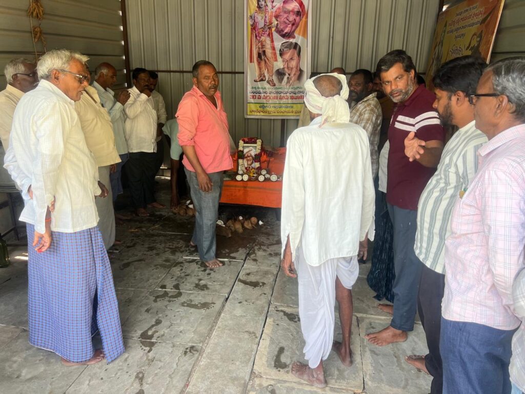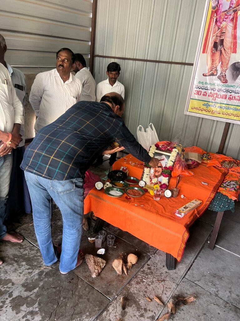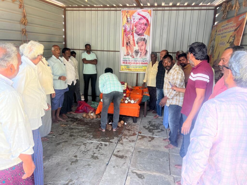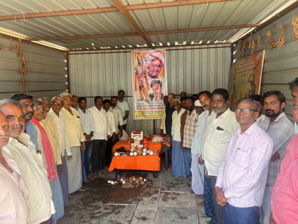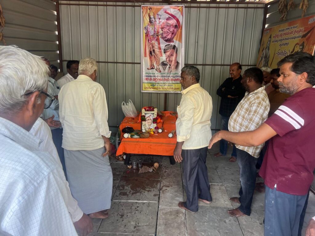 నందమూరి తారక రామారావు ప్రజలకు ఎనలేని సేవలు అందించడంతో ఆయన ప్రజల గుండెల్లో చిరస్థాయిగా చిరస్మరణీయులుగా నిలిచిపోయారని గ్రామ సర్పంచ్ శ్రీనివాసరావు అన్నారు. గ్రామంలో ఎన్టీఆర్ వర్ధంతి వేడుకలను ప్రజలు ఘనంగా నిర్వహించారు. ఆయన చిత్రపటానికి పూలమాలలు వేసి ఘన నివాళులు అర్పించారు. తెలుగు ప్రజలు ఎన్టీఆర్ ను ఆదర్శంగా తీసుకుని ప్రతి ఒక్కరు ప్రజలకు చేతనైన కాడికి సేవలు అందిస్తే మనము ప్రజల గుండెల్లో గూడు కట్టుకోవచ్చని సర్పంచ్ అన్నారు. బడుగు బలహీన వర్గాలకు ఆయన చేసిన సేవలను ప్రజలు ఎన్నటికీ మరువలేరన్నారు. మహిళలకు, బడుగు బలహీనవర్గాలకు, రిజర్వేషన్లు కల్పించి మేడారం రాజకీయంగా ఎదుగుదలకు కృషి చేశారన్నారు.పటేల్ పట్వారి వ్యవస్థను రూపుమాపి రైతులకు పట్టేదారు పాస్బుక్కులను అందించిన ఘనత ఎన్టీఆర్ దక్కిందన్నారు. ఆనాడు రైతులు భూముల రికార్డులు సక్రంగా లేక ఎన్నో ఇబ్బందులకు గురయ్యారని ఎన్టీఆర్ తీసుకొచ్చిన మార్పులు సమాజానికి ఎంతగానో ఉపయోగపడ్డాయని గ్రామస్తులు గుర్తు చేసుకున్నారు. ఆయన చేసిన సేవలు ప్రపంచ ప్రజలలో గుర్తింపు తేవడం ఎంతో గర్వమన్నారు. సినీ రంగంలో పేరు ప్రఖ్యాతలు గడించడంతోపాటు రాజకీయాల్లో అరగేట్రం చేసి ఉమ్మడి ఆంధ్రప్రదేశ్ లోనే ఓ విప్లవాన్ని సృష్టించడం ఎంతో అభినందనీయమని ప్రజలు కొని ఆడారు. కార్యక్రమానికి హాజరైన సర్పంచ్ లకు, విద్యుత్ శాఖలో పనిచేస్తున్న అధికారులకు, మెరుగైన సేవలు అందిస్తున్న పంచాయతీ సిబ్బంది సాయిలుకు పూల మాలతో ఘనంగా సన్మానించారు. ఈ కార్యక్రమంలో వివిధ గ్రామాల సర్పంచులు, బాకర్ ఫారం సర్పంచ్ కనకమెడల శ్రీనివాసరావు, చేతన నగర్ సర్పంచ్ సునీల్, కార్యక్రమం సర్పంచ్ సునీల్ బాకర్ ఫారం ఉపసర్పంచ్ సంతోష్, కారేగం మాజీ ఉపసర్పంచ్ శివరాజ్ పటేల్, గ్రామ వార్డు సభ్యులు సత్యనారాయణ, ఉత్తం, కనకమెడల బాబురావు, మున్నంగి పూర్ణచంద్రరావు, మున్నంగి వినోద్ బాబు, వీరేశం పటేల్, బంటు సాయిలు, నగేష్, యాదవరావు, సుశిత్, జాస్తి నరసింహారావు, నల్లూరి ప్రభాకర్ రావు, మల్లాది రాంబాబు, సుంకర దత్తు, విద్యుత్ శాఖ అధికారులు రాజేష్, కనకమెడల వేణుగోపాలరావు, కనకమెడల చంద్రశేఖర్, ఇనుకుర్తి శ్రీనివాసరావు, జాస్తి రాజారావు, బంటు సాయలు, మెకానిక్ రాము, అమ్ములు వారు రాజేందర్ , వెలగపూడి హరిబాబు, చిట్టిబాబు, ప్రవీణ్, భరత్ , సుకృత్, కిలారు సురేష్ కుమార్ ,నగేష్ తోపాటు పలువురు పాల్గొన్నారు.