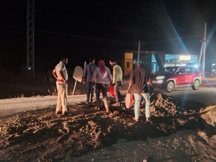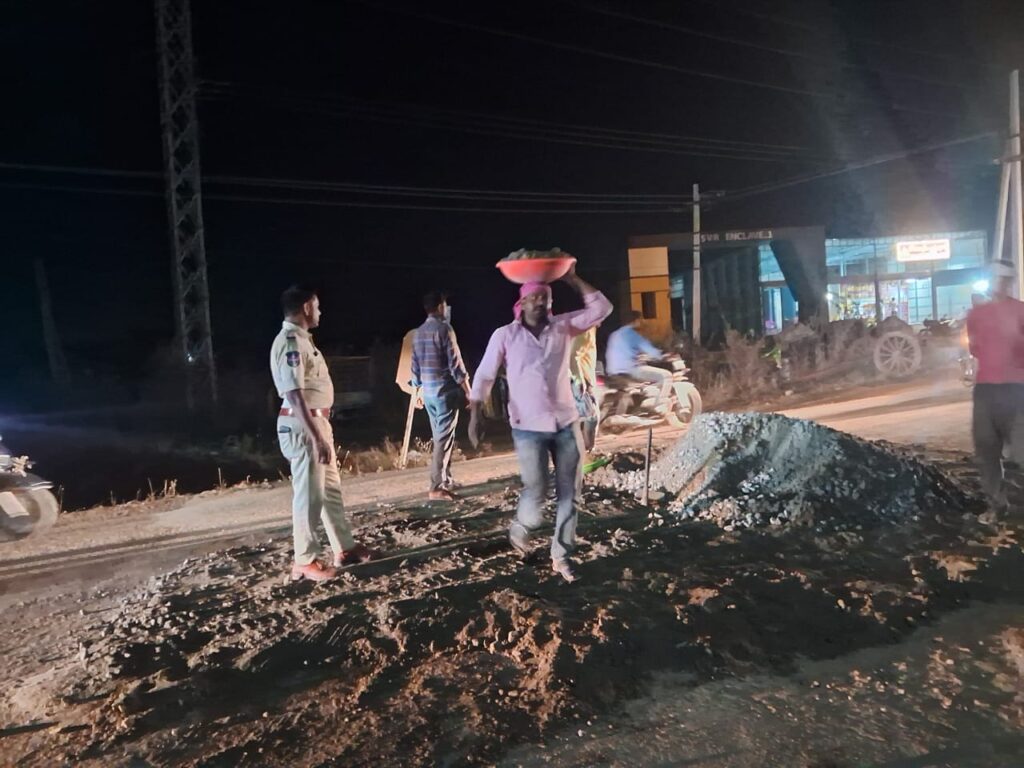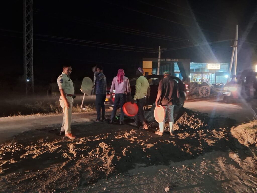 ఫోటో రైట్ అప్ చీకటి లో గుంటలను పూడ్చివేస్తున్న సబ్ ఇన్స్పెక్టర్
