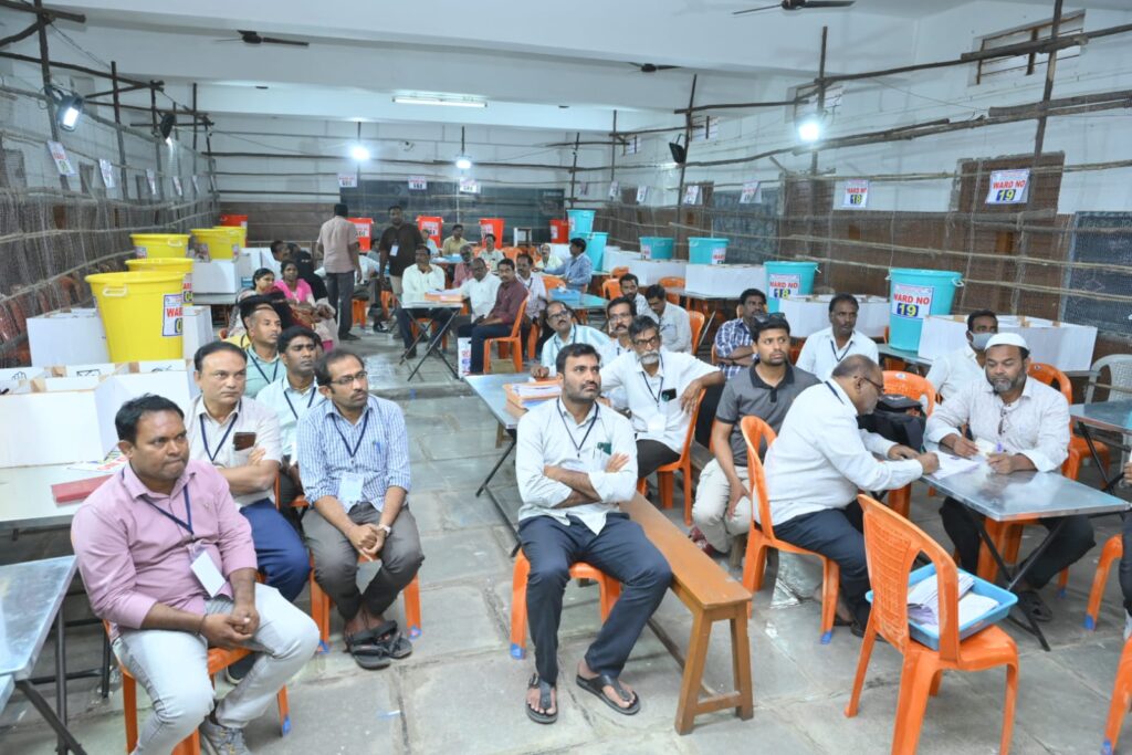 శుక్రవారం ఉదయం స్ట్రాంగ్ రూమ్ ల నుంచి బ్యాలెట్ బాక్సులను కౌంటింగ్ హాళ్లకు చేరుస్తూ, 8.00 గంటల నుండి అభ్యర్థులు, కౌంటింగ్ ఏజెంట్ల సమక్షంలో ఓట్ల లెక్కింపు ప్రక్రియ ప్రారంభం అవుతుందని వెల్లడించారు. నిర్ణీత సమయానికి కౌంటింగ్ ప్రారంభించేందుకు వీలుగా సిబ్బందిని అన్నివిధాలుగా సన్నద్ధం చేశామన్నారు. ఓట్ల లెక్కింపు ప్రక్రియపై ఇప్పటికే పలు విడతలుగా శిక్షణ తరగతులు నిర్వహించి పూర్తి అవగాహన కల్పించామని అన్నారు.