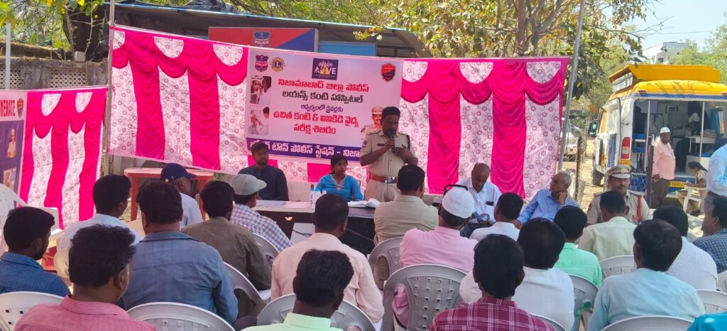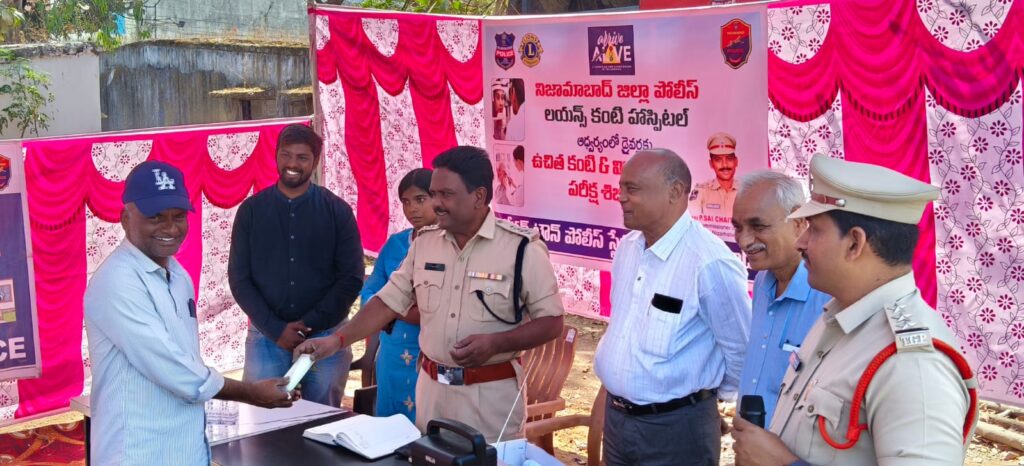 రాష్ట్ర డిజిపి శివధర్ రెడ్డి ప్రతిష్టాత్మకంగా చేపట్టిన అరైవ్–అలైవ్ కార్యక్రమంలో భాగంగా నిజామాబాద్ పోలీస్ కమిషనర్ సాయి చైతన్య ఆదేశాల మేరకు బోధన్ పోలీస్ స్టేషన్ లో నిర్వహించారు.లయన్స్ క్లబ్ బోధన్ వారి సహకారంతో అంబులెన్స్, ఆర్టీసీ, స్కూల్ బస్సు మరియు ఆటో డ్రైవర్లకు ప్రత్యేకంగా కంటి మరియు చెవి వైద్య పరీక్షలు నిర్వహించారు. కంటి వైద్య నిపుణురాలు డా. బెనిట జాన్, ఆడియాలజిస్ట్ డా. బిపిన్ డ్రైవర్లకు పరీక్షలు చేసి అవసరమైన వారికి కంటి అద్దాలు అందజేశారు.