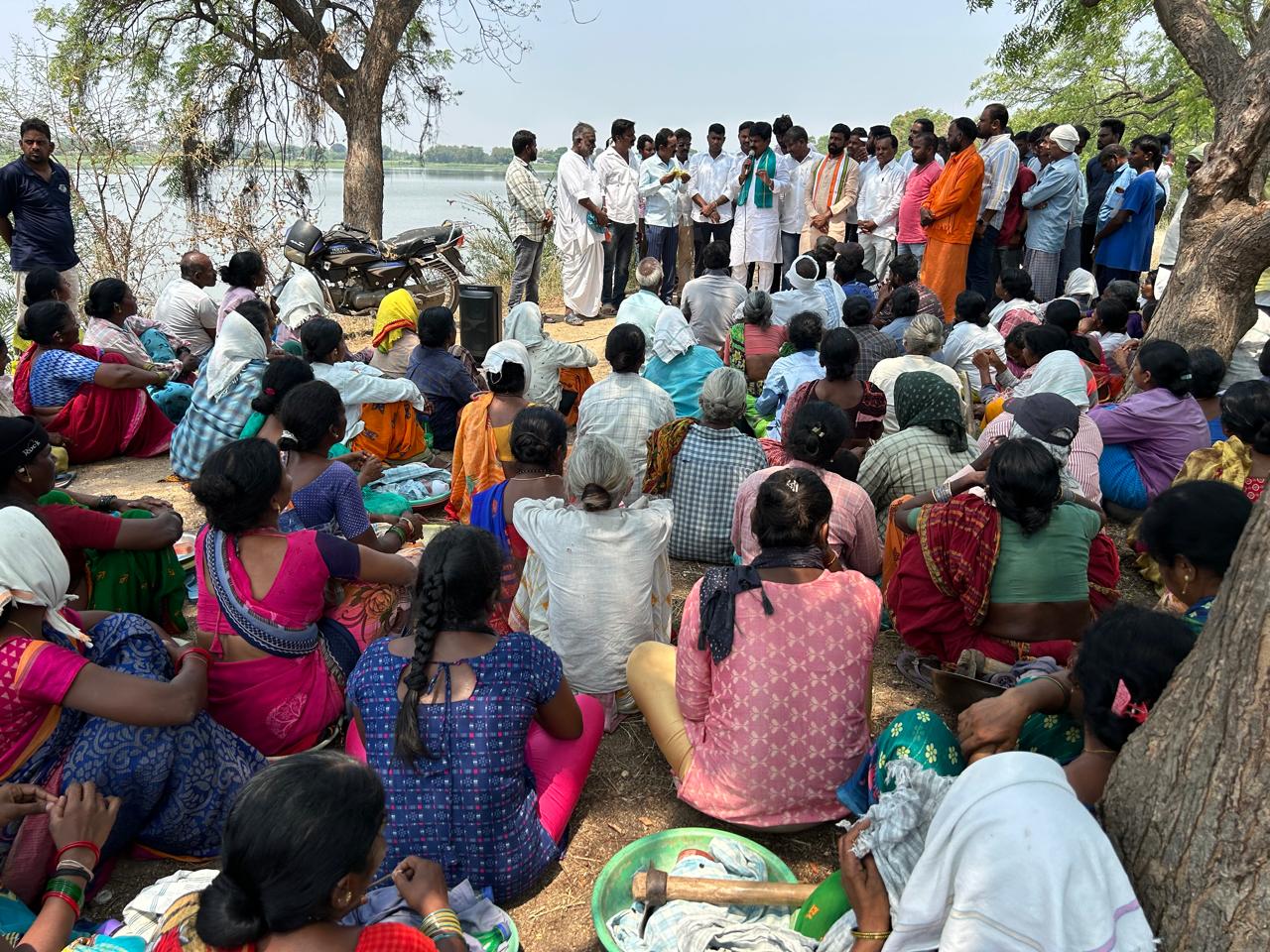 ఆర్మూర్ మండలం అందాపూర్ ,మగ్గిడి మరియు ఖానాపూర్ గ్రామంలో మన కాంగ్రెస్ పార్టీ ఎంపీ అభ్యర్థి తాడిపత్రి జీవన్ రెడ్డి ని కాంగ్రెస్ పార్టీకి చేతు గుర్తుకు ఓటేసి భారీ మెజార్టీతో గెలిపించాలని ఉపాధి హామీ కూలీలకు చెప్పిన ఆర్మూర్ కాంగ్రెస్ పార్టీ నియోజకవర్గ ఇంచార్జ్ ప్రొద్దుటూరి వినయ్ కుమార్ రెడ్డి . మాట్లాడుతూ ఉపాధి హామీ పథకాన్ని కాంగ్రెస్ ప్రభుత్వం ప్రారంబించిందని చెప్పతు, అందపూర్,మగ్గిడి, ఖానాపూర్ గ్రామంలో ఇప్పటివరకు ఆనాడు ఇందిరమ్మ ఇచ్చిన ఇల్లు తప్ప ఇప్పటివరకు ఈ భారతీయ జనతా పార్టీ ఒక ఇల్లు కూడా ఇవ్వలేదని చెప్పడం జరిగింది. కాంగ్రెస్ పార్టీ ఇస్తున్న ఆరు పథకాలను చెపుతూ నాలుగు పథకాలను అమలు చేయడం జరిగిందని మరో రెండు పథకాలు ఎంపీ ఎలక్షన్లు పూర్తికాగానే అమలు పరుస్తామని చెప్పడం జరిగింది. మీ గ్రామానికి మీకు ఎటువంటి ఇబ్బంది వచ్చినా నేను ఉన్నానని భరోసా కల్పించడం జరిగింది.రానున్న రోజుల్లో ప్రతి గ్రామానికి ఇందిరమ్మ ఇల్లు ఇపిస్తామని హామీ ఇవ్వడం జరిగింది.ఈ కార్యక్రమంలో ముఖ్య అతిధిగా నిజామాబాద్ మాజీ గ్రంథాలయ చైర్మన్ మారా చంద్రమోహన్ రెడ్డి ,మాజి నిజాంసాగర్ కెనాల్ ఛైర్మెన్ యల్లా సాయిరెడ్డి పాల్గొన్నారు. మరియు ఆర్మూర్ మండల ఎంపిపి పస్కా నర్సయ్య , బ్లాక్ కాంగ్రెస్ అధ్యక్షులు ఇస్సాపల్లి జీవన్ ,ఆర్మూర్ మండల అధ్యక్షులు చిన్నారెడ్డి ,దెగాం ఎంపిటిసి శ్రీనివాస్ గౌడ్,అంకపూర్ ఎంపిటిసి MC గంగారెడ్డి ,మగ్గిది మాజి సర్పంచ్ నర్సయ్య,మాజి సర్పంచ్ లక్ష్మీ నారాయణ గౌడ్ , మాజి ఎంపిటిసి సభ్యులు జెన్నపల్లి గంగాధర్ ,మగ్గిది దేవా రెడ్డి పాల్గొన్నారు.