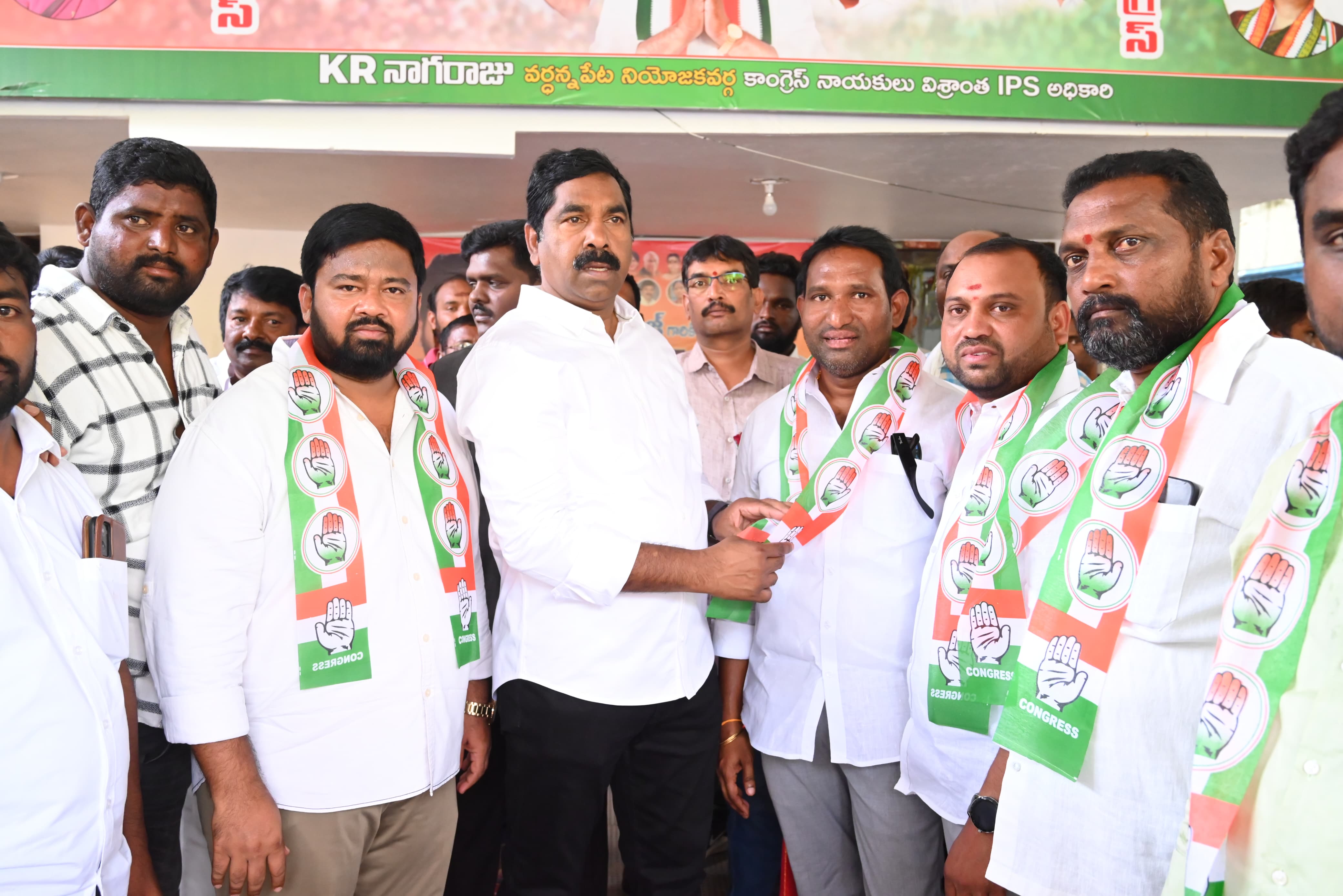 వర్థన్నపేట నియోజకవర్గంలో కాంగ్రెస్ బలం రోజురోజుకు పుంచుకుంటుందినాయకుడే ఒక సేవకుడి లాగా పని చేస్తున్న తరుణంలో ప్రజలందరూ ఆకర్షితులై కాంగ్రెస్ పార్టీ లో చేరుతున్నారు. గ్రేటర్ వరంగల్ మున్సిపల్ కార్పొరేషన్ 3వ డివిజన్ కార్పొరేటర్ జన్ను షీభరాణి -అనిల్ కుమార్ మరియు వరంగల్ మండల పార్టీ అధ్యక్షుడు జన్ను సుధాకర్ ఆధ్వర్యంలో మరియు మడికొండ 64వ డివిజన్ కాంగ్రెస్ పార్టీ అధ్యక్షుడు కుర్ల మోహన్ ఆధ్వర్యంలో వరంగల్ పార్లమెంట్ యువజన కాంగ్రెస్ కోఆర్డినేటర్ పోలేపాక అశోక్ ఆధ్వర్యంలో 65వ డివిజన్లకు చెందిన బిఆర్ఎస్ నాయకులు సుమారు 100 మందిని హనుమకొండ లోని సుబేదారి ఎమ్మెల్యే క్యాంప్ కార్యాలయం నందు కండువా కప్పి పార్టీలోకి ఆహ్వానించిన వర్ధన్నపేట శాసనసభ్యులు విశ్రాంత ఐపిఎస్ అధికారి కేఆర్ నాగరాజు ఈ సందర్భంగా ఎమ్మెల్యే మాట్లాడుతూ పార్టీలో చేరిన వారందరినీ కంటికి రెప్పలా కాపాడుకుంటానని,రాబోయే ఎన్నికల్లో ప్రతి ఒక్కరూ పాత కొత్త అనే విభేదాలు లేకుండా కలిసికట్టుగా పనిచేయాలని *వరంగల్ కాంగ్రెస్ ఎంపీ అభ్యర్థి కడియం కావ్వ ని భారీ మెజార్టీతో గెలిపించేందుకు ప్రతి ఒక్కరూ కృషి చేయాలని కోరారు. ఈ కార్యక్రమంలో 3వ, 64వ, 65వ డివిజన్ కాంగ్రెస్ పార్టీ నాయకులు కార్యకర్తలు వివిధ అనుబంధ సంఘాల నాయకులు కార్యకర్తలు మహిళా నాయకులు తదితరులు పాల్గొన్నారు.