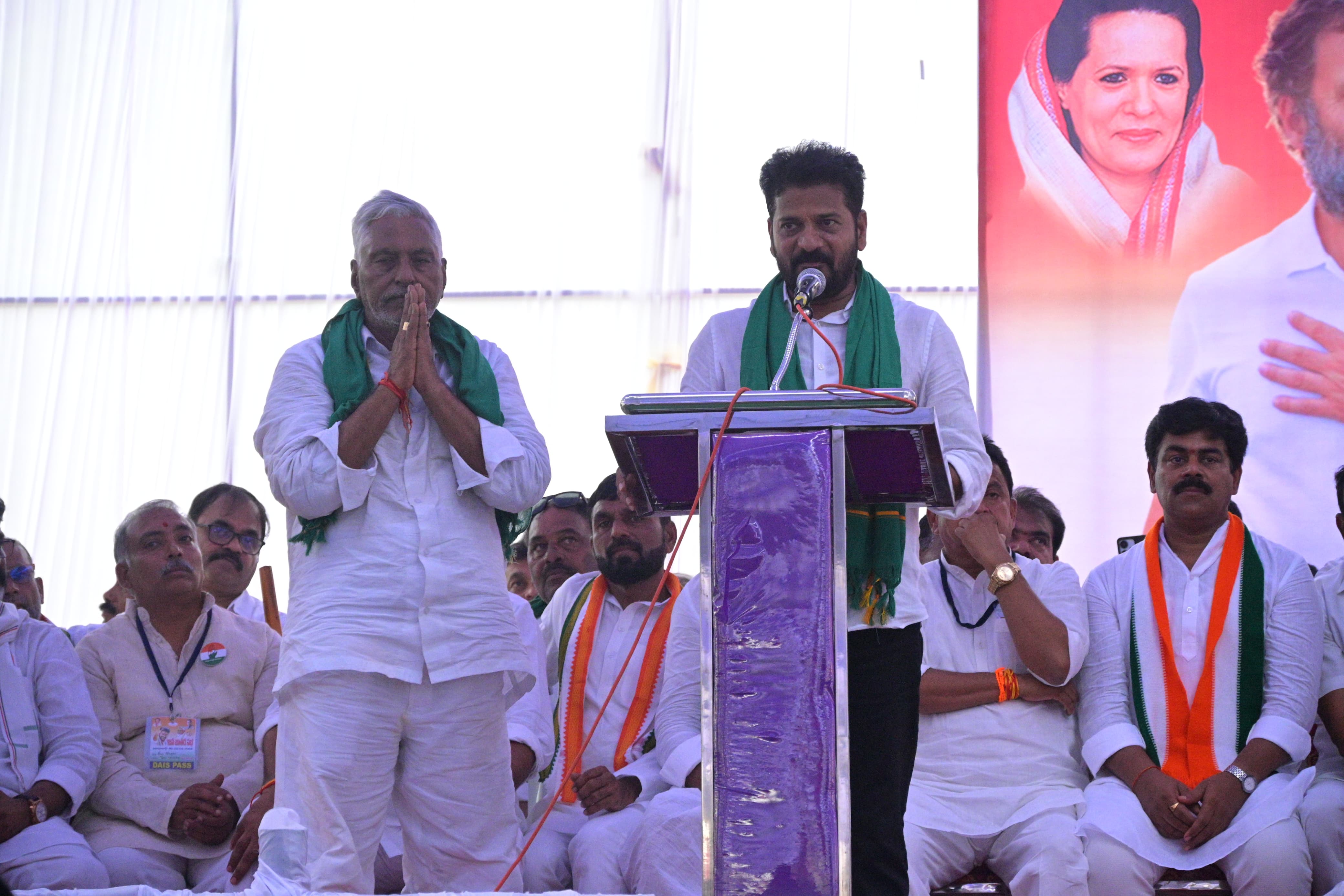 దేశంలో కొన్ని మతతత్వ పార్టీలు మతాలను రెచ్చగొట్టి దేశాన్ని విచ్ఛిన్నం చేసే ప్రయత్నాలు చేస్తున్నారని ఇటువంటి పరిణామాలు దేశానికి మంచిది కాదని ప్రజలు గమనించి ఓటు అనే ఆయుధంతో బుద్ధి చెప్పాలని తెలంగాణ రాష్ట్ర ముఖ్యమంత్రి రేవంత్ రెడ్డి పిలుపునిచ్చారు. నిజామాబాద్ జన జాతర సమావేశంలో ముఖ్యఅతిథిగా ముఖ్యమంత్రి హాజరయ్యారు. నిజాంబాద్ రైతంగం తనకు ఆనాటి నుండి నేటి వరకు ఉత్సాహాన్ని నింపుతుందని అన్నారు. నిజాంబాద్ రైతాంగ సమస్యల పరిష్కారం చేసి తీరుతానని పదేళ్లపాటు తెలంగాణ రైతాంగాన్ని కేంద్ర రాష్ట్ర ప్రభుత్వాలు నిర్లక్ష్యం చేశాయని ఆగ్రహం వ్యక్తం చేశారు. పంజాబ్ హర్యానా లాంటి రాష్ట్రాల రైతులు రైతు సమస్యల పరిష్కారానికి ఉద్యమించి కేంద్ర ప్రభుత్వ మెడలు వంచి నల్ల చట్టాలను వెనుకకు తీసుకునేట్లు చేశారన్నారు. తెలంగాణలో నిజాంబాద్ ప్రాంత రైతులు ఉత్సాహం మరియు ఆదర్శప్రాయాలని కొనియాడారు. నిజాంబాద్ రైతుల సమస్యలు విస్మరించిన వారిని శాశ్వతంగా రాజకీయాలకు దూరం చేయడంలో దిట్ట అని అన్నారు. రాబోయే రోజుల్లో రైతులు ఎంత మేరకు వరి పంటను సాగు చేసిన 500 రూపాయలు క్వింటాలకు బోనస్ అందజేసి దాన్యం కొనుగోలు చేస్తామన్నారు. పసుపు బోర్డు పేరిట బిజెపి పార్లమెంట్ అభ్యర్థి ఐదేళ్లపాటు రైతులను మోసం చేసి మరోసారి మోసం చేసే ప్రయత్నం చేస్తున్నారని అన్నారు. పసుపు బోర్డు ఏర్పాటు చేస్తున్నామని ప్రధానమంత్రి తో హామీ ఇప్పించి జీవో విడుదల చేశారు. ఏ ప్రాంతంలో పసుపు బోర్డు ఏర్పాటు చేస్తున్నారు జీవోలో పేర్కొనకపోవడం విచారకరమన్నారు. మరోసారి బిజెపి అభ్యర్థి అరవింద్ రైతులను మాయ చేసి ఓట్లు దండుకోవాలని చూస్తున్నారని ముఖ్యమంత్రి ఆరోపించారు. పసుపు బోర్డు కాంగ్రెస్ ప్రభుత్వం ఏర్పాటు చేస్తే తీరుతుందని రైతులకు హామీ ఇచ్చారు. స్వయానా రైతు అయినటువంటి జీవన్ రెడ్డిని నిజామాబాద్ పార్లమెంట్ కాంగ్రెస్ పార్టీ అభ్యర్థిగా నిలిపామని జీవన్ రెడ్డిని భారీ మెజార్టీతో గెలిపిస్తే కేంద్రంలో వ్యవసాయ శాఖ మంత్రి చేసే బాధ్యత నేను తీసుకుంటానని ముఖ్యమంత్రి స్పష్టం చేశారు. రైతు నాయకుడిని పార్లమెంటు పంపిస్తే పార్లమెంటులో రైతు కూలీల సమస్యలపై గళం విప్పి కేంద్రంలో ఏ పార్టీ అధికారంలో ఉన్న సమస్యలు పరిష్కారం అవుతాయని అన్నారు.