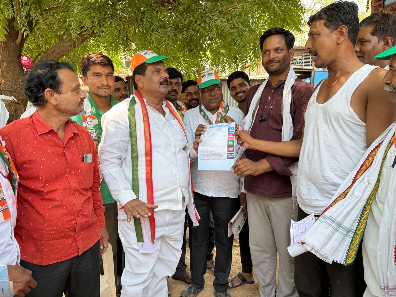 జుక్కల్ నియోజకవర్గ అభివృద్ధి కాంగ్రెస్ పార్టీతోనే సాధ్యమవుతుందని, గత 15 ఏళ్ల నుండి నియోజకవర్గంలో అభివృద్ధి సంక్షేమం కుంట్టు పడిందని ఆగ్రోస్ ఇండస్ట్రీస్ రాష్ట్ర చైర్మన్ కాసుల బాలరాజు అన్నారు.జుక్కల్ మండల కేంద్రంలో జహీరాబాద్ పార్లమెంట్ అభ్యర్థి సురేష్ షేట్ కార్ కు మద్దతుగా రాష్ట్ర ఆగ్రోస్ ఇండస్ట్రీస్ కార్పొరేషన్ చైర్మన్ కాసుల బాలరాజ్ గడపగడపకు ప్రచారం నిర్వహించారు. కాంగ్రెస్ పార్టీ తెలంగాణ రాష్ట్రంలో చేపడుతున్న గ్యారెంటీ పథకాల గురించి ప్రజలకు వివరించారు. గతంలోనూ రైతులకు రుణమాఫీ చేసింది కాంగ్రెస్ నుండి నేటి వరకు గులాబీ పార్టీ రైతులను నిర్లక్ష్యం చేసిందని ఆరోపించారు. రైతుల పంట రుణాలను ముఖ్యమంత్రి కేసీఆర్ మాఫీ చేస్తారని అన్నారు. ఈ సందర్భంగా ఆయన మాట్లాడుతూ ముఖ్యమంత్రి రేవంత్ రెడ్డి నాయకత్వంలో రాష్ట్రం అభివృద్ధి పథంలో దూసుకుపోతుందని, కాంగ్రెస్ పార్టీ ఇచ్చిన హామీలను నెరవేరుస్తుందని, ఆగస్టు 15 లోపు రైతులకు ఏకకాలంలో రెండు లక్షల రుణమాఫీని చేస్తుందన్నారు. వెయ్యి రూపాయలు ఉన్న గ్యాస్ సిలిండర్ ను 500 కే ఇప్పటికే కాంగ్రెస్ ప్రభుత్వం పేదలకు అందిస్తుందని వివరించారు. గతంలో గృహ వినియోగదారులు ఒక నెల బిల్లు చెల్లించకపోతే విద్యుత్ సరఫరా నిలిపివేసేవారని కాంగ్రెస్ ప్రభుత్వం వచ్చిన వెంటనే పేదల గృహ విద్యుత్ సరఫరా ఉచితంగా పార్లమెంట్ ఎన్నికల్లో దేశంలో అత్యధిక స్థానాలను కాంగ్రెస్ పార్టీ దక్కించుకుంటుందని కేంద్రంలో అధికారంలోకి రావడం ఖాయమని కాంగ్రెస్ ప్రభుత్వం అధికారంలోకి వస్తే మరో అయిదు గ్యారెంటీ ల అమలకు ఇప్పటికే రాహుల్ గాంధీ హామీ ఇచ్చిన విషయాన్ని ప్రజలకు వివరించారు.ఈ కార్యక్రమంలో పార్టీ వర్కింగ్ ప్రెసిడెంట్ అసుపత్వార్ వినోద్, కామారెడ్డి జిల్లా మైనారిటీ అధ్యక్షులు ఖలేఖ్ మండల అధ్యక్షుడు సంజు పటేల్, మార్కెట్ కమిటీ వైస్ చైర్మన్ మనోహర్, ఇమ్రాన్ ఖాన్, మాజీ సర్పంచ్ అనిల్, విటల్, సాయిలు., అనీల్ సెట్ , అనిల్ , కే సాయిలు , కండె రావు , తుకారాం పటేల్ , అరుణ్, రోషన్ ,సాయినాథ్ , కృష్ణ , మారుతీ జ్ఞానేశ్వర్ తదితరులు పాల్గొన్నారు