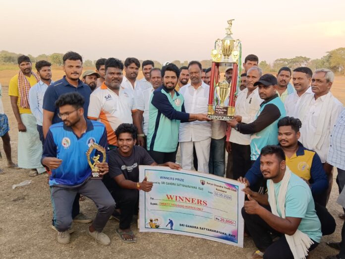 గణపురం మండలం: సీతారాంపురం గ్రామ పరిధిలో ముదిరాజ్ ఎంప్లాయిస్ అండ్ ప్రొఫెషనల్ అసోసియేషన్ (మెపా) ఆధ్వర్యంలో నిర్వహించిన క్రికెట్ ఫైనల్ కీ చేరగా నేడు ముఖ్యఅతిథిగా భూపాలపల్లి నియోజకవర్గ శాసనసభ్యులు గండ్ర సత్యనారాయణ రావు హాజరై బహుమతులను అందజేయడం జరిగింది. మొదటి బహుమతి ములుగు రెండవ బహుమతి మండల పరిధిలోని కొండాపురం గ్రామానికి అందించారు. అనంతరం మాట్లాడుతూ గెలుపు ఓటమి లను సమానంగా తీసుకోవాలి క్రీడ పోటీల్లో పాల్గొనడం వల్ల స్నేహభావం పెంపొందుతుందని ఎమ్మెల్యే సత్యనారాయణ రావు అన్నారు. క్రీడలు దేహదారుణ్యానికి దోహదం చేస్తాయన్నారు. అంతేకాకుండా ప్రతి క్రీడాకారుడు క్రీడా స్ఫూర్తితో ఆడి గెలుపోవటములను సామాన్యంగా స్వీకరించాలని సూచించారు. ఓటమి గెలుపునకు నాంది పలుకుతుందని గుర్తు చేశారు. ఈ కార్యక్రమంలో మెపా జిల్లా అధ్యక్షులు పుట్ట తిరుపతి ముదిరాజ్, ముదిరాజ్ మహాసభ జిల్లా ఉపాధ్యక్షులు చాడ కృష్ణస్వామి,జిల్లా ప్రధాన కార్యదర్శి కౌటం రమేష్ ముదిరాజ్, కాంగ్రెస్ పార్టీ మండల అధ్యక్షుడు రేపాక రాజేందర్, పిఎసిఎస్ చైర్మన్ కన్నబోయిన కుమార్, గ్రామ కమిటీ అధ్యక్షుడు పిట్ల రంజిత్, జిల్లా ఉపాధ్యక్షులు నరేష్, చెక్క బాబురావు, జిల్లా కోశాధికారి జోడు ఈశ్వర్ ఉప్పరి ప్రవీణ్ ,కోలెపాక నర్సింగరావు, సోషల్ మీడియా ఇన్చార్జి జోడు ప్రదీప్ ముదిరాజ్, పెండ్యాల వెంకటేష్ ముదిరాజ్, మేకల పూర్ణచందర్, మరియు క్రీడాకారులు తదితరులు పాల్గొన్నారు.