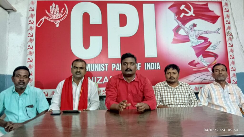 నిజామాబాద్ నగరంలోని సిపిఐ జిల్లా కార్యాలయంలో ప్రెస్ మీట్ నిర్వహించడం జరిగింది ఈ ప్రెస్ మీట్ ను ఉద్దేశించి సిపిఐ జిల్లా కార్యదర్శి పి.సుధాకర్ మాట్లాడుతూ ప్రస్తుతం దేశవ్యాప్తంగా జరుగుతున్నటువంటి పార్లమెంట్ ఎన్నికలలో ఇండియా కూటమి సిపిఐ బలపరిచిన కాంగ్రెస్ పార్లమెంట్ అభ్యర్థి జీవన్ రెడ్డి ని గెలిపించాలని సిపిఐ నిజామాబాద్ పార్లమెంటరీ సమావేశం 6 తేదీ సోమవారం నాడు ఉదయం 11 గంటలకు నిజామాబాద్ నగరంలోని ఫిట్టర్స్ యూనియన్ ఏ ఐటి యుసి కార్యాలయం (కాలూర్ రోడ్డు నూతన కలెక్టరేట్) వద్ద పార్లమెంట్ ఎన్నికలకు సంబంధించిన సమావేశం కలదు.