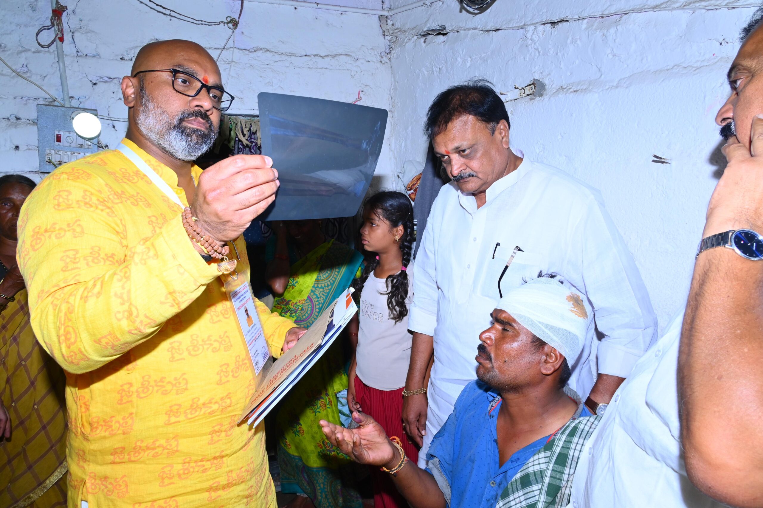 బోధన్ పట్టణం బూత్ నెం.69 లో ముస్లిం యువకుల దాడిలో గాయపడ్డ బిజెపి కార్యకర్త నందిపేట నవీన్ నీ పరామర్శించిన నిజామాబాద్ పార్లమెంట్ సభ్యులు ధర్మపురి అర్వింద్ , బీజేపి రాష్ట్ర కార్యవర్గ సభ్యులు మేడపాటి ప్రకాష్ రెడ్డి (MPR) , మోహన్ రెడ్డి , సీనియర్ నాయకులు నరసింహ రెడ్డి , వారి వెంట జిల్లా కార్యదర్శి సుధాకర్ చారి, బోధన్ పట్టణ అధ్యక్షులు కొలిపాక బాలరాజు, సీనియర్ నాయకులు గోపీ కిషన్, ప్రధాకార్యదర్శులు వాసు, సందీప్, అర్వింద్, ఫ్లోర్ లీడర్ మాసిని వినోద్, కార్యకర్తలు తదితరులు ఉన్నారు.