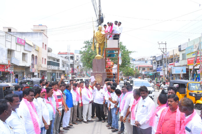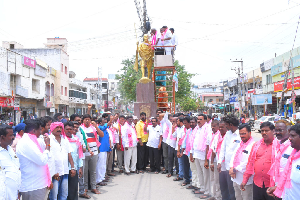 కాంగ్రెస్ సర్కార్ రైతాంగ వ్యతిరేక చర్యలకు నిరసనగా రాష్ట్ర వ్యాప్త నిరసనగా బీఆర్ఎస్ అధినేత, మాజీ ముఖ్యమంత్రి కేసీఆర్ పిలుపునివ్వగా, మిర్యాలగూడ పట్టణం, రెడ్డి కాలనీలోని బీఆర్ఎస్ పార్టీ కార్యాలయం నందు మాజీ శాసన సభ్యులు నల్లమోతు భాస్కర్ రావు పిలుపు మేరకు, తెలంగాణ రాష్ట్ర ఆగ్రోస్ మాజీ ఛైర్మన్, మాజీ ఎంఎల్ఏ తిప్పన విజయసింహ రెడ్డి, బీఆర్ఎస్ నాయకులు విలేకరుల సమావేశం నిర్వహించారు, ఈ సందర్భంగా మాట్లాడుతూ వరి ధాన్యానికి క్వింటాలుకు 500 రూపాయల బోనస్ చెల్లిస్తానని, అదికారం కోసం రైతాంగాన్ని మోసం చేసి, మరొక సారి రైతాంగాన్ని మబ్య పెట్టి, ప్రభుత్వాన్ని దీనా స్థితిలో ప్రస్తుత ముఖ్యమంత్రి రేవంత్ రెడ్డి నడపడం శోచనీయం అని .. రైతే రాజు అని రైతుని మోసం చేసి, మరొక్క సారి ఆత్మహత్యల తెలంగాణ గా మార్చాలని చూస్తున్నారు అని అన్నారు.అనంతరం అన్నీ రకాల వడ్లకు 500 బోనస్ ప్రకటించి, రైతాంగాన్ని కాపాడాలని ప్రభుత్వాన్ని డిమాండ్ చేశారు.ఈ సందర్భంగా పట్టణంలోని మన జాతిపిత మహాత్మా గాంధీ విగ్రహానికి వినతి పత్రాన్ని అందజేశారు.ఇట్టి నిరసనలో నల్లగొండ జిల్లా డీసీఎంస్ ఛైర్మన్ దుర్గంపూడి నారాయణ రెడ్డి, దామరచర్ల జడ్పీటీసీ అంగోతు లలిత హాతీరాం, పట్టణ మహిళా విభాగం అద్యక్షురాలు పెండ్యాల పద్మ, వైస్ ఎం.పి.పి అమరావతి సైదులు, వ్యవసాయ మార్కెట్ మాజీ ఛైర్మన్ & వైస్ ఛైర్మన్లు చిట్టిబాబు నాయక్, యడవెల్లి శ్రీనివాస్ రెడ్డి, కొ ఆప్షన్ సభ్యులు మోసిన్ అలీ, మండల పార్టీ అద్యక్షులు పాలుట్ల బాబయ్య, నామిరెడ్డి కరుణాకర్ రెడ్డి, పాక్స్ మాజీ ఛైర్మన్ వెలిశెట్టి రామకృష్ణ, బీఆర్ఎస్ నాయకులు కరీం, పునాటి లక్ష్మీ నారాయణ, తలకోన శ్రీధర్ రెడ్డి, సాదినేని శ్రీనివాస్, చాంద్ పాషా, మన్నెం శ్రీనివాస్ రెడ్డి, పశ్య శ్రీనివాస్ రెడ్డి, అంజన్ రాజు, గుడిసె దుర్గా ప్రసాద్, ఘంట శ్రవణ్ రెడ్డి, కార్మిక విభాగ అద్యక్షులు అంజయ్య, కోదాటి రమా, పట్టణ వార్డ్ అద్యక్ష, కార్యదర్శులు, ఎం.పి.టి.సిలు మాజీసర్పంచ్లు, మరియు బీఆర్ఎస్ నియోజకవర్గ కార్యకర్తలు పాల్గొన్నారు.
