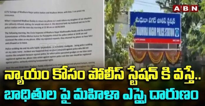 హైదరాబాద్: నగరంలో ఓ మహిళ ఎస్ఐ దౌర్జన్యానికి దిగారు. న్యాయం కోసం పోలీస్ స్టేషన్కు వచ్చిన బాధితులపైనే సదరు ఎస్ఐ దాడి చేయడం కలకలం రేపుతోంది. ఈ నెల 17వ తేదీన మధురానగర్లో ఓ వైన్స్ షాపు సిబ్బంది దాడిలో గాయపడిన రమేష్ దంపతులు ఫిర్యాదు చేయడానికి పోలీస్ స్టేషన్కు వెళ్లారు. కాగా.. ఇక్కడ విధుల్లో ఉన్న ఓ మహిళ ఎస్ఐ తాము ఇచ్చిన ఫిర్యాదు తీసుకోకపోగా తమను దూర్భాషలాడారని బాధితులు ఆవేదన వ్యక్తం చేశారు. అంతటితో ఆగకుండా రమేష్ను అతని భార్య ఎదుటే కొడుతూ.. బాధితుడి మర్మాంగాలపై 3 సార్లు ఎస్ఐ తన్నారని ఆయన భార్య తెలిపారు. బాధితులమైన తమను కులం పేరుతో ధూషించడంతో పాటు పీఎస్లో తీవ్రంగా హింసిచారని రమేష్ దంపతులు ఎస్సీ కమిషన్లో ఫిర్యాదు చేశారు.