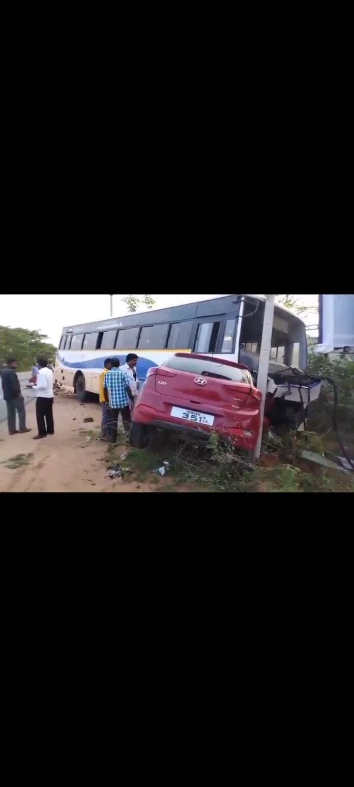 హైదరాబాద్ – శ్రీశైలం జాతీయ రహదారిపై శుక్రవారం ఉదయం ఘోర ప్రమాదం చోటు చేసుకుంది. పికెట్ డిపోకు చెందిన సూపర్ లగ్జరి బస్సు హైదరాబాద్ నుంచి శ్రీశైలం వెళ్ళుతుంది. రంగారెడ్డి జిల్లా ఆమనగల్లు మండలం రాంనుంతల గేటు, వాసుదేవ్ పూర్ గేటు మధ్యకు బస్సు రాగానే కల్వకుర్తి నుంచి హైదరాబాద్ వెళుతున్న ఐ20కారు బలంగా ఢీకొట్టింది. ఈ ఘటనలో కారులో ప్రయాణిస్తున్న ముగ్గురు వ్యక్తులు అక్కడిక్కడే దుర్మరణం చెందారు.
