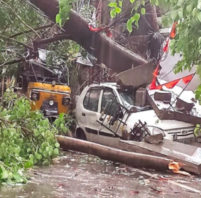 ఈదురుగాలులతో కూడిన అకాల వర్షం ఆదివారం సాయంత్రం పూట రాష్ట్ర వ్యాప్తంగా బీభత్సం సృష్టించాయి.బంగాళాఖాతంలో ఏర్పడిన అల్పపీడనం.రెమాల్ తుపాను ప్రభావం తెలంగా ణను అతలాకుతలం చేసింది. అప్పటి వరకు ఎండ కాస్తూ… మధ్యాహ్నం ఉన్నట్లుండి భారీ ఈదురు గాలులు విరుచుకుపడ్డాయి.
