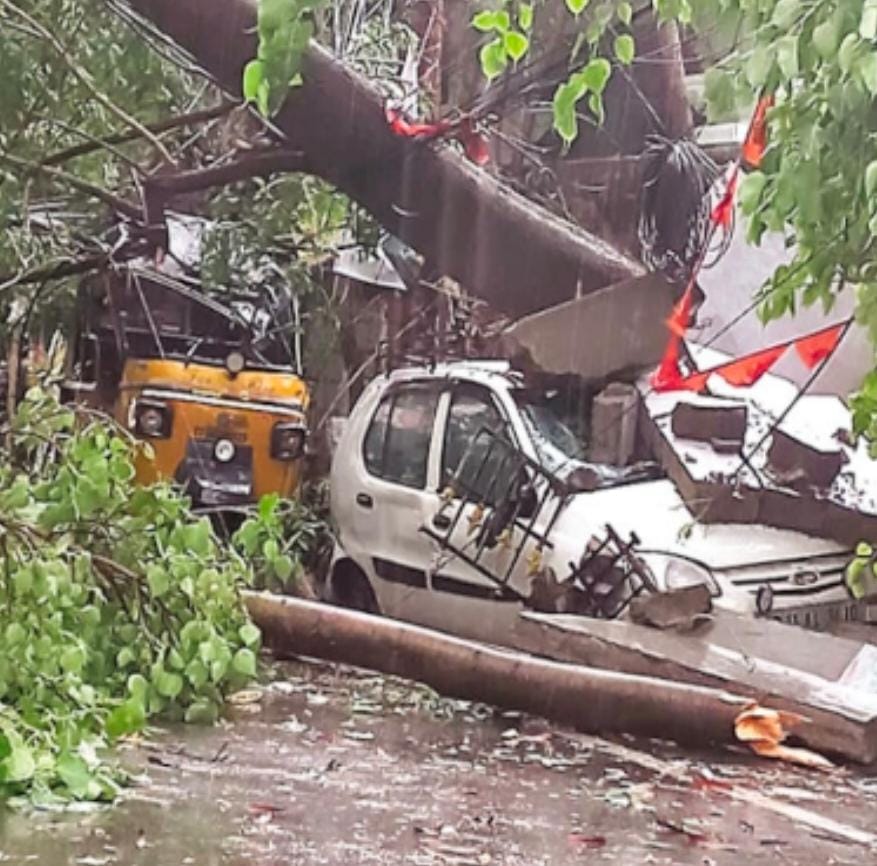 పలు జిల్లాల్లో భారీ వృక్షా లు, విద్యుత్ స్తంభాలు విరిగిపడటంతో అనేక చోట్ల ట్రాఫిక్కు అంతరాయం ఏర్పడింది. గంటల తరబడి విద్యుత్ సరఫరా నిలిచి పోయింది. హైదరాబాద్లో మధ్యాహ్నం మూడు గంటలకు గంటకు 40 నుంచి 50 కిలోమీటర్ల వేగంతో గాలులు వీయడం తో రహదారులు, ఇళ్లు, వాహనాలపై భారీ చెట్లు, కొమ్మలు విరిగిపడ్డాయి. గాలులకు భారీ వర్షం తోడ వ్వడంతో ప్రజలు వణికిపో యారు. హయత్నగర్ నుంచి వనస్థలిపురం మీదుగా ఎల్బీనగర్ వరకూ, మల్కాజిగిరి, మేడ్చల్ నుంచి శామీర్పేట్ మీదుగా కీసర, ఘట్కేసర్ వరకూ వాహనాల రాకపోకలు స్తంభించాయి.