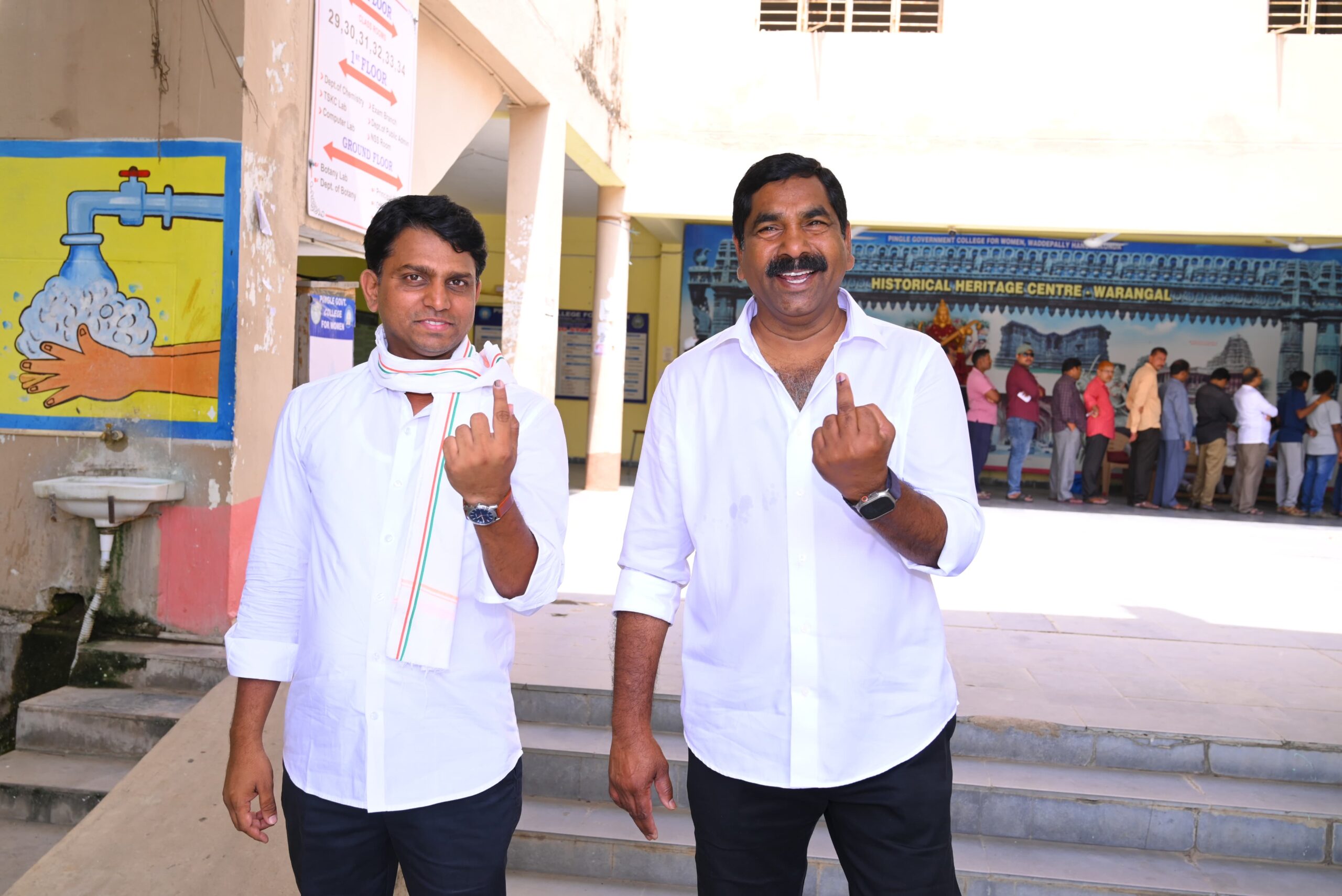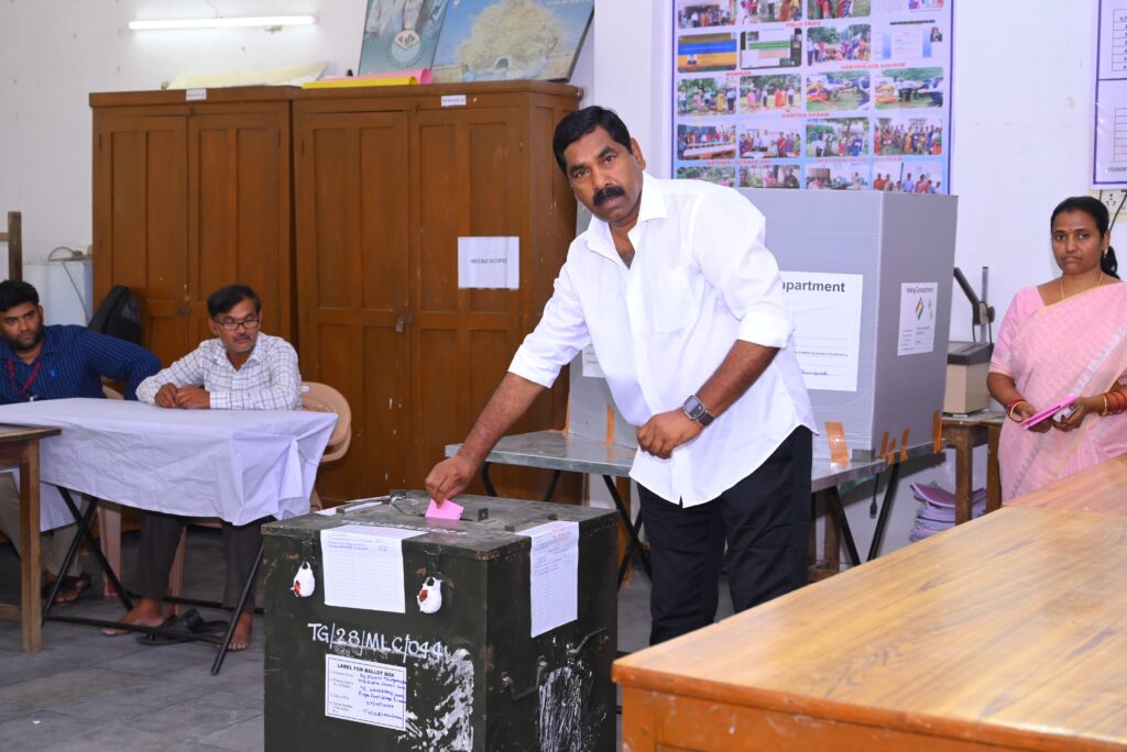 వరంగల్, నల్గొండ ఖమ్మం పట్టభద్రుల ఉప ఎన్నిక సందర్భంగా హనుమకొండ వడ్డేపల్లి పింగిలి మహిళ కళాశాలలో లైన్ లో నిలబడి సామాన్య వ్యక్తిల తన ఓటు హక్కు వినియోగించుకున్న గౌరవ వర్ధన్నపేట శాసనసభ్యులు విశ్రాంత ఐపిఎస్ అధికారి * కేఆర్ నాగరాజు. అనంతరం ఎమ్మెల్యే మాట్లాడుతూ పట్టభద్రులందరూ తమ ఓటు హక్కు వినియోగించుకోవాలని కోరటం జరిగింది. కాంగ్రెస్ పార్టీ అభ్యర్థి కి ఓటు వేసి భారీ మెజార్టీతో పట్టభద్రులు గెలిపించాలని ఎమ్మెల్యే పిలుపునిచ్చారు.